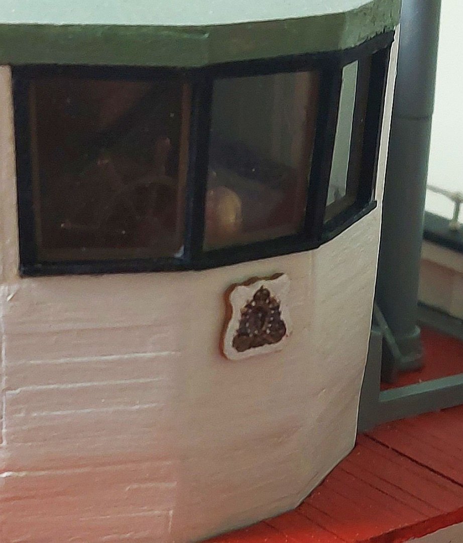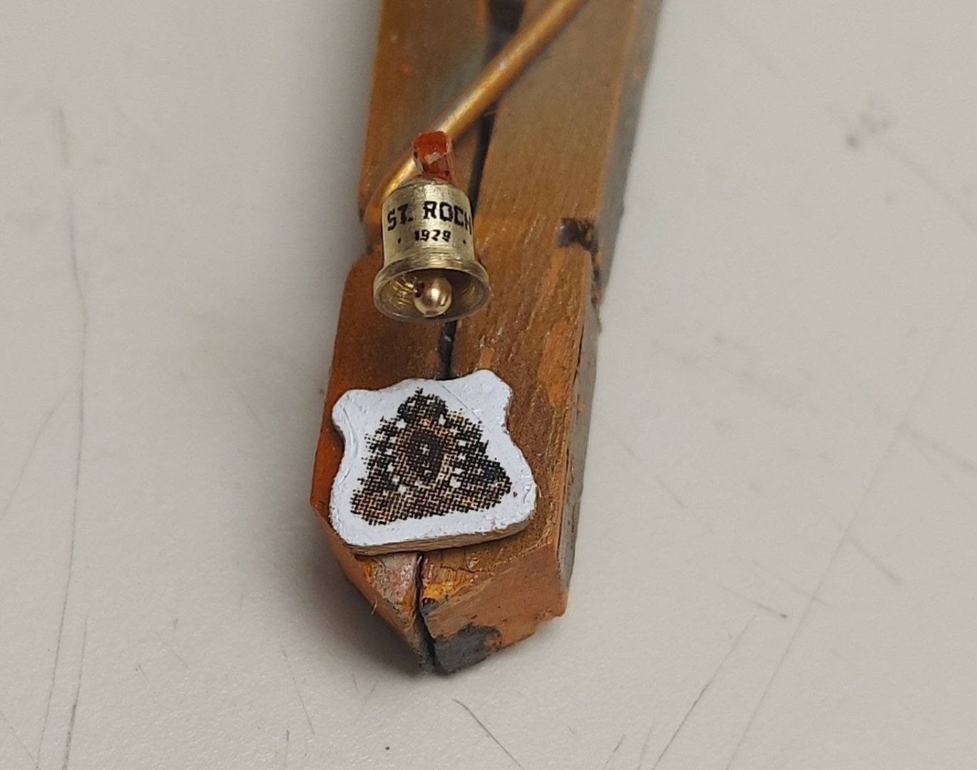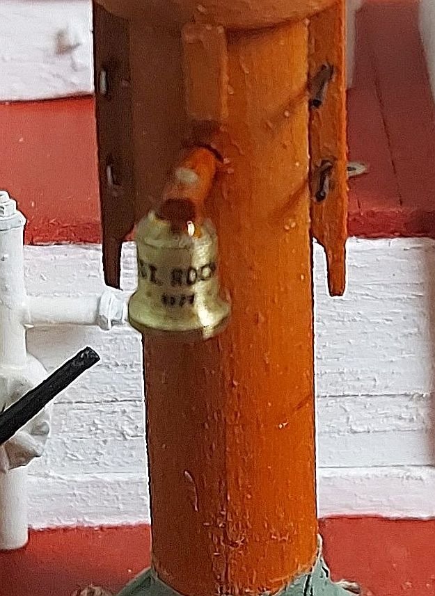 The day before Hallowe'en and we're ready for the spooky, candy filled debauchery! I have started sail making, and while waiting for the silkspan to dry I made up a couple of miscellaneous details... I turned St. Roch's bell and carved out the plaque to hold the RCMP crest. The clapper is made from an old stanchion. The badge pixellated in my phone's macro mode, it looks better mounted on the wheelhouse front... Here is the bell mounted on the foremast... The numbers under 'St Roch' are 1928, the date of launching. Now back to the sails.
