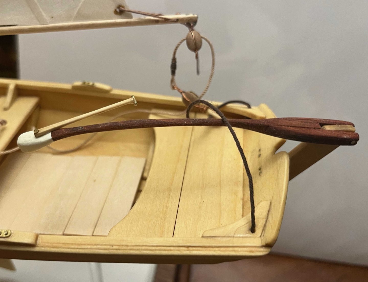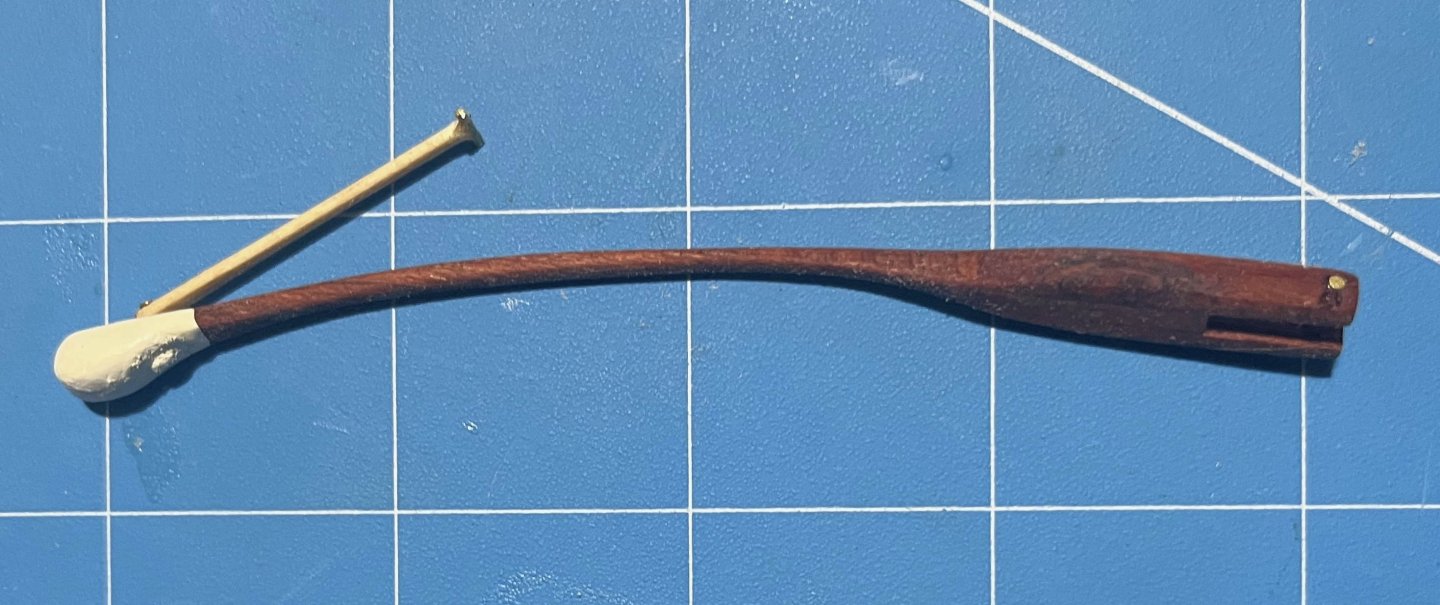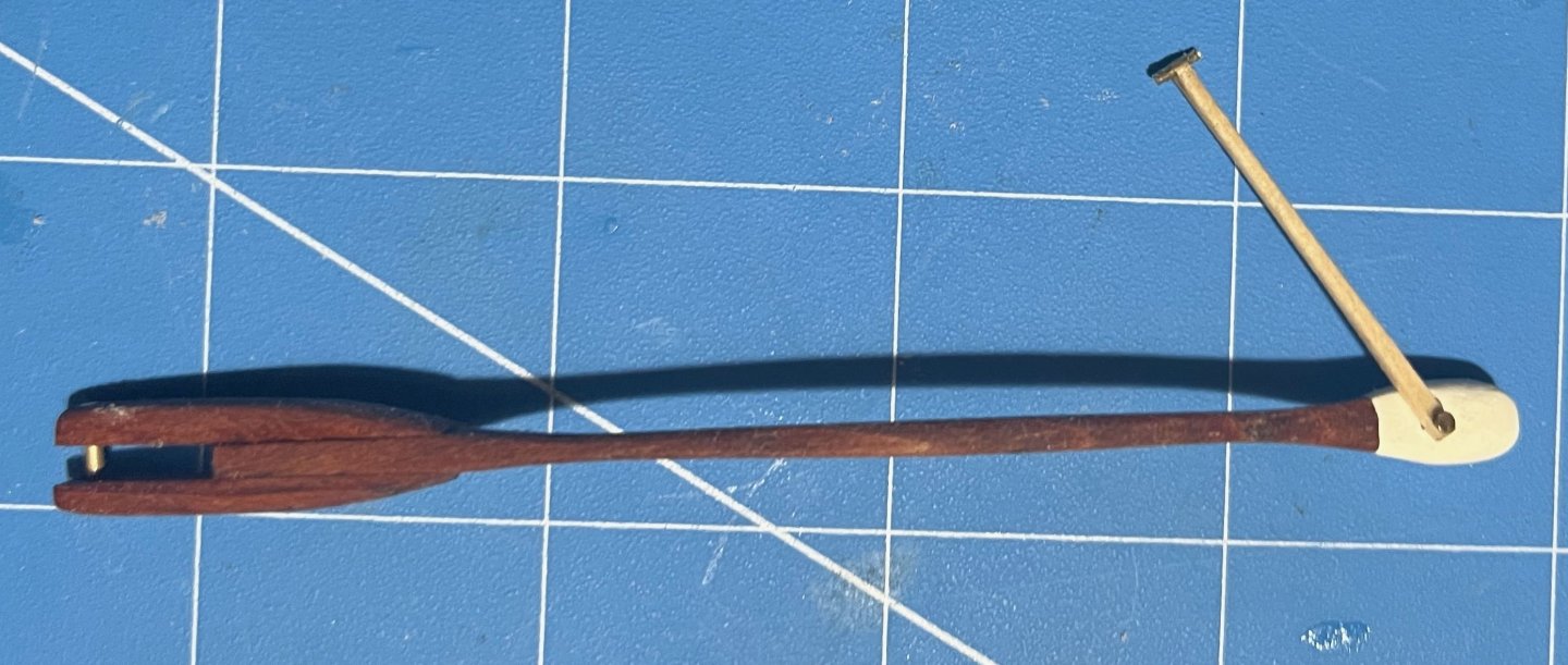 Very nice work personalizing the tiller! As to your point about accuracy to a specific ship vs. accuracy to a generic type, I have to admit that I prefer the latter style. Figuring out the range of possibilities and choosing which option I want to depict and why seems more fun than trying to pin everything down to exactly how it was, at least at the moment. Who knows, though, maybe after a few more builds I'll change my mind.