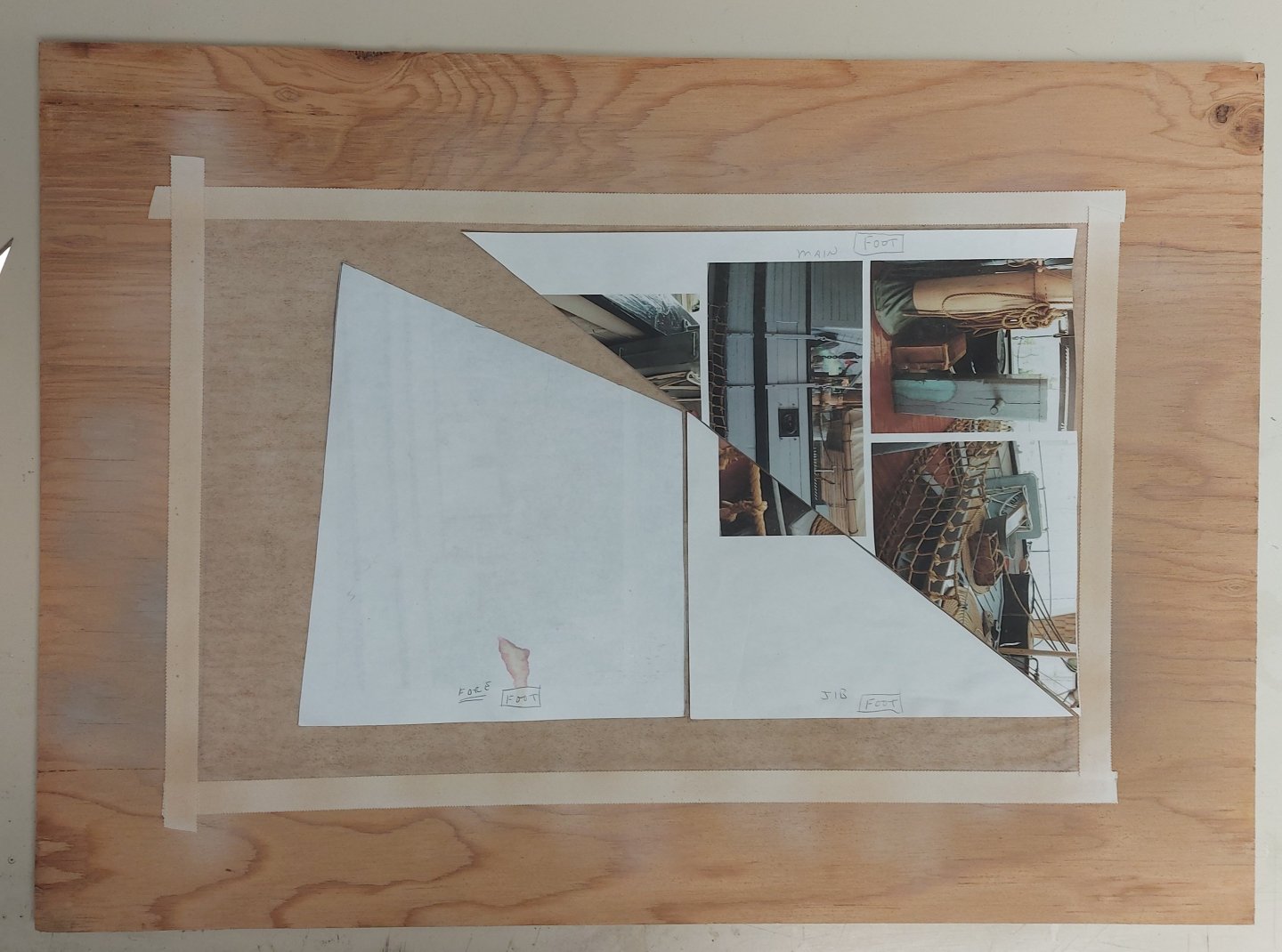 Be sure the silkspan is very dry before handling it! As I recall, on sailing ships the tablings along the edges of the sail were on the port side, and the larger corner reinforcements and other extra cloths were on the starboard. Will you add boltropes?
