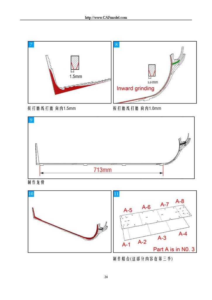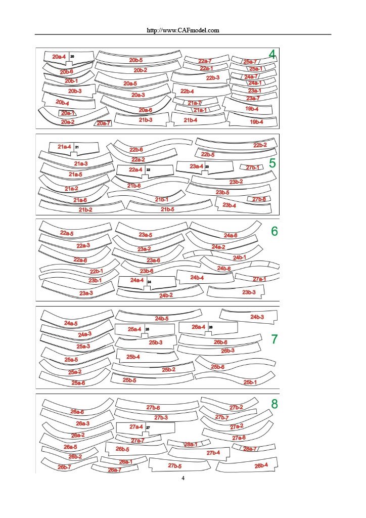 PART 2 This pack is largely similar to the previous, except a plywood jig is included for the modeller to build the bow frames around. At this stage, there's still no cradle as we are concerned with the building of those many frames. All parts are packed into a single cellophane wrap. After unpacking and photographing, tape was used to re-bind the parts to prevent any twist until I come to build the model. Instructions This is very similar to Pack 1, except the bow jig is illustrated. This looks very simple to build. Again, a full size sheet is included over which to build the numerous hull frames. Next post will show Part 3.- 3 replies