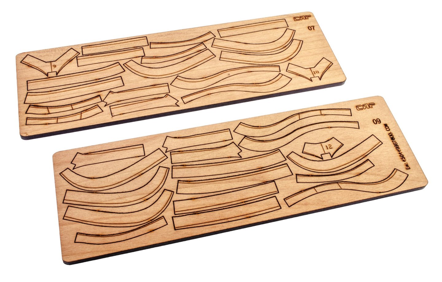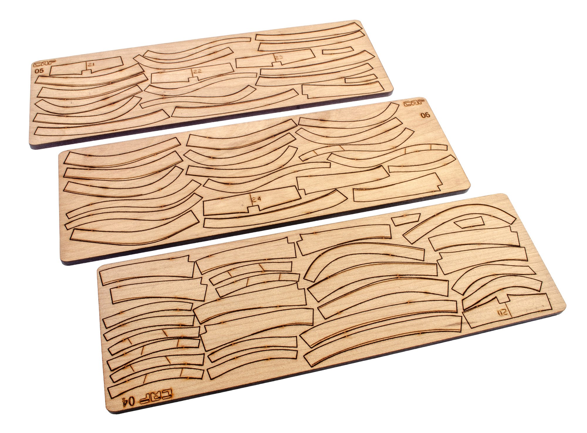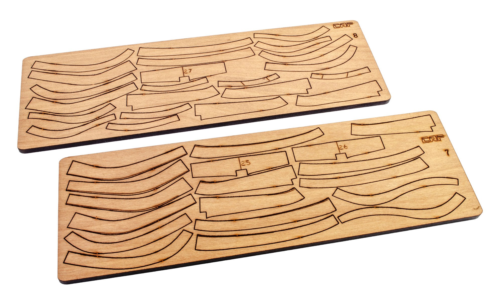 PART 4 This pack is very similar to the previous in that it contains more framings, but also the keel, meaning that the hull really can now start to be assembled. Everything is packed into a single cellophane wrap as before. We've also been given more CNC-machined parts. It's quite unusual to split that large cradle into more than one pack, and not to have that as the initial box too. Instructions If you'd like to see the whole instructions for this and how these first four parts come together, then they are available directly from the product page. Please check them out and if you're already tempted by this release, please tell Tom you've been following this topic. Part 4.5 will follow in a day or two.- 3 replies