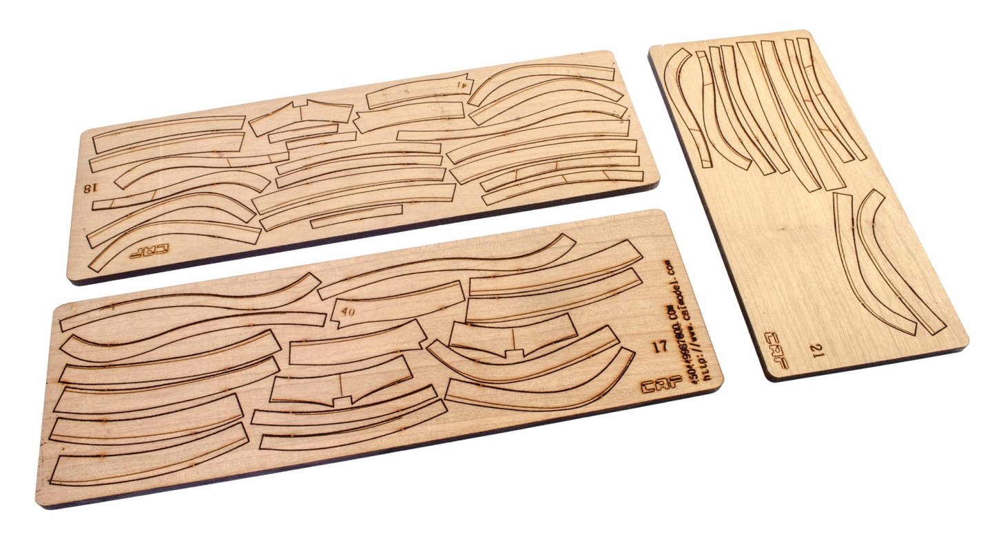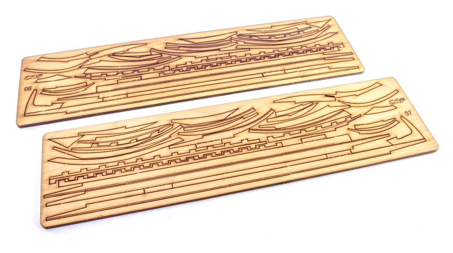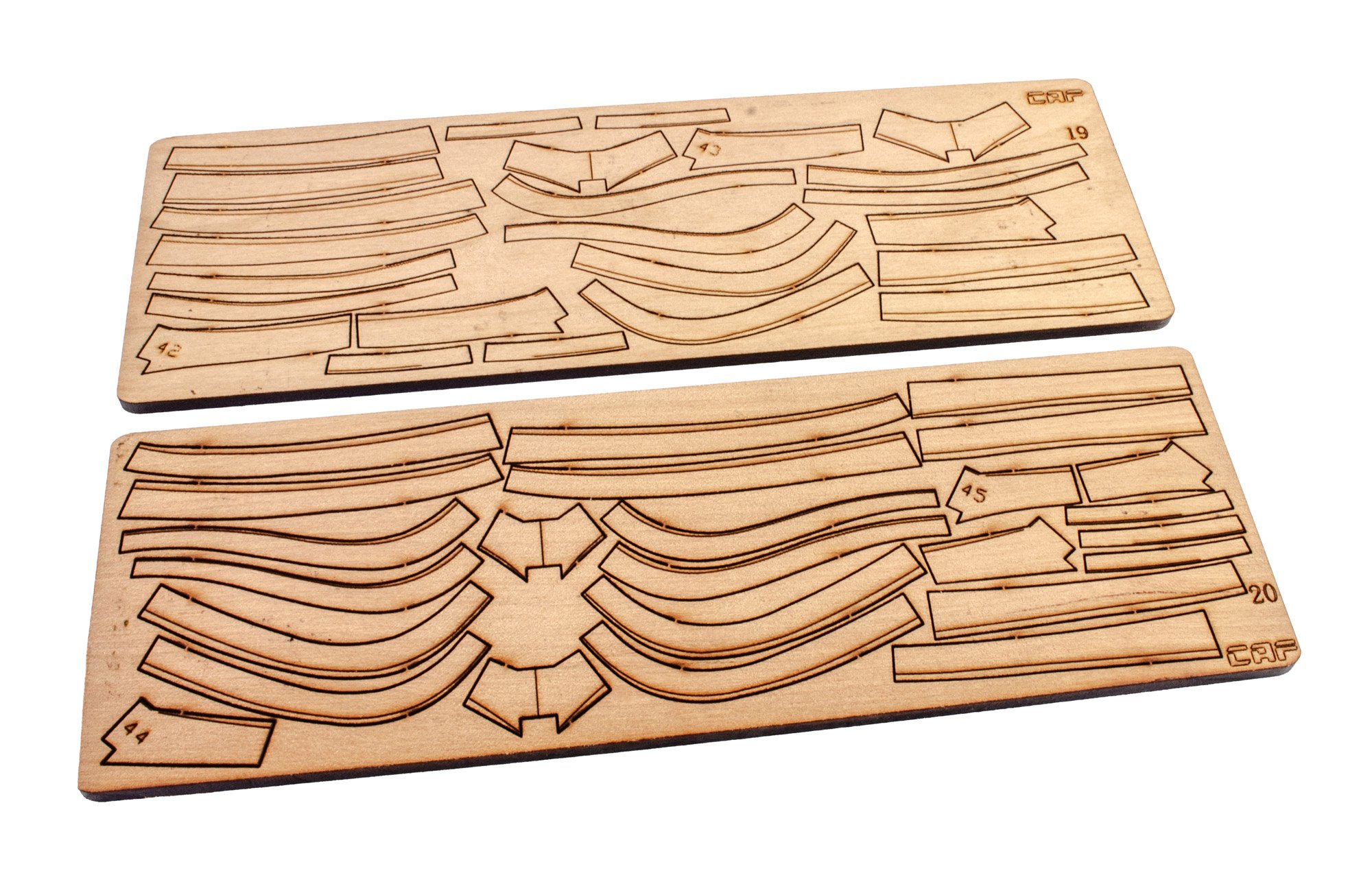 PART 4 This pack is very similar to the previous in that it contains more framings, but also the keel, meaning that the hull really can now start to be assembled. Everything is packed into a single cellophane wrap as before. We've also been given more CNC-machined parts. It's quite unusual to split that large cradle into more than one pack, and not to have that as the initial box too. Instructions If you'd like to see the whole instructions for this and how these first four parts come together, then they are available directly from the product page. Please check them out and if you're already tempted by this release, please tell Tom you've been following this topic. Part 4.5 will follow in a day or two.- 3 replies