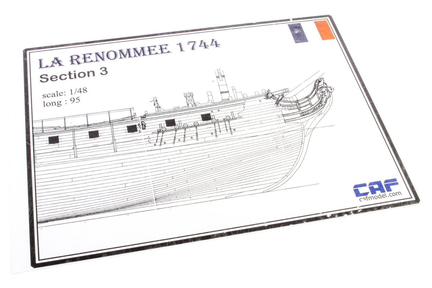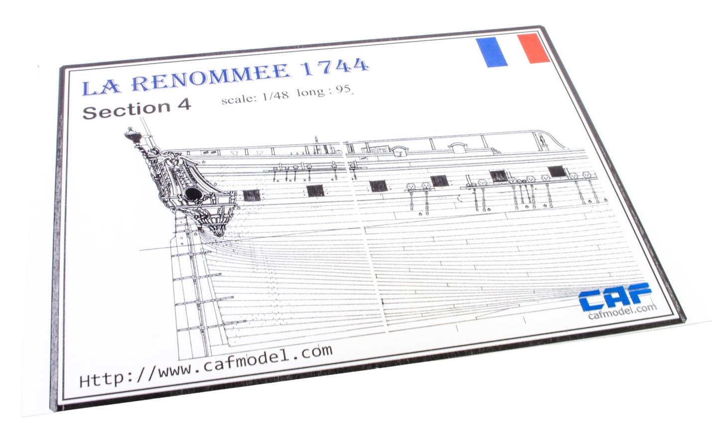 1:48 La Renommée 1744 CAF Model Kit available in chapters - check site for prices (complete kit around $2500USD as time of writing) History La Renommée was a French frigate launched in 1744 at Brest during the War of the Austrian Succession, at a time when France was refining the fast, lightly built frigate type that would soon dominate naval scouting and commerce warfare. Designed according to contemporary French principles emphasizing speed, maneuverability, and efficient firepower, she carried roughly 30–40 guns (depending on source and period) and was considered a capable and well-sailing ship. In 1747, while en route from France to the Caribbean, La Renommée was captured by the British after an engagement with HMS Dover in the Atlantic. Impressed by her design and sailing qualities, the Royal Navy took her into service as HMS Renown, reclassifying her as a fifth-rate frigate. Under the British flag she served for more than two decades in patrol, escort, and overseas duties, including service in the English Channel and the West Indies. After a long and relatively uneventful career, the ship was finally broken up in 1771, her longevity reflecting both the soundness of her original French construction and the Royal Navy’s appreciation of captured French frigate design. The kit Here is the kit spec, as given on the CAF website. In 1:48, this is a very large model, especially if you complete with the masts and rig. Scale:1/48 Length : 1230 mm Hull length: 927 mm Width: 550 mm Hull width: 250 mm Height: 950mm Hull height 250 mm Building jig included in kit Keel, rib, hull is in American cherry wood Hull and carvings are boxwood Boxwood figurehead with very high detail Deck uses white maple Guns, anchor, rudder hinge, brass casting, and many more metal fittings All laser-cut wooden sheets with quality wood ( minimal colour variation) POF kit, many high accurate ribs 8 pound class artillery * 26 4 pound class artillery * 4 English instructions A0 drawing 1:1 This is the latest kit, brought to chapter completion by CAF Model of China. The main release comprises SIX individual boxes, with an optional hefty Part 4.5 that contains all of the interior, should you with so fit it (and why wouldn't you!). So yes, I have SEVEN boxes here, and the weight is not insubstantial! I don't know if it's luck or design, but I've never had any import duty to pay on Chinese imports in the UK. All of these kits were sent in two shipments, with them being heavily protected and wrapped in heavy duty film. Everything arrived in A1 condition. All parts are individually sealed with a product label. PART 1 Like the first sets in the La Renommée series, this contains many sheets (cherry wood) or frame parts. All sheets are laser cut and contain engraved lines which help with alignment and bevelling. There is some char/resin residue on the rear of the sheets, but this easily comes away with some minor sanding. Pack 1 contains three wrapped packets of parts. Numbering on these is shown in the manual, with each sheet having a reference number. There are no metal parts or fittings in this pack. All of this will come later. Instructions The instruction booklet for this part is minimal as it merely shows the sheets and how the frames are built. There is also a large sheet over which the frames are assembled. Just remember to use some cellophane as a barrier so the parts don't stick to it. I will look at Part 2 in the next post.