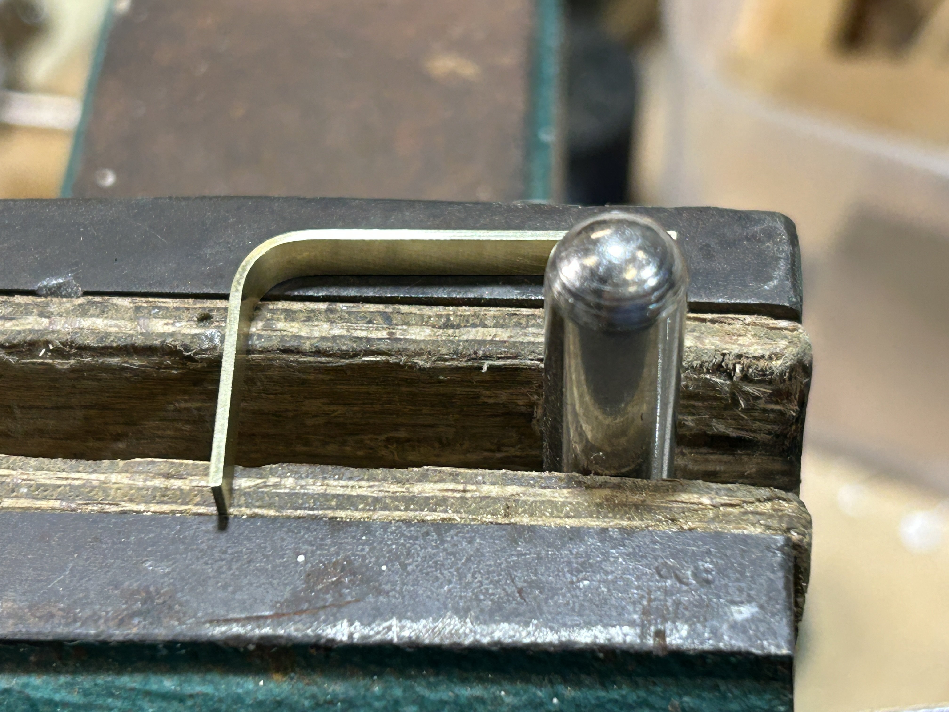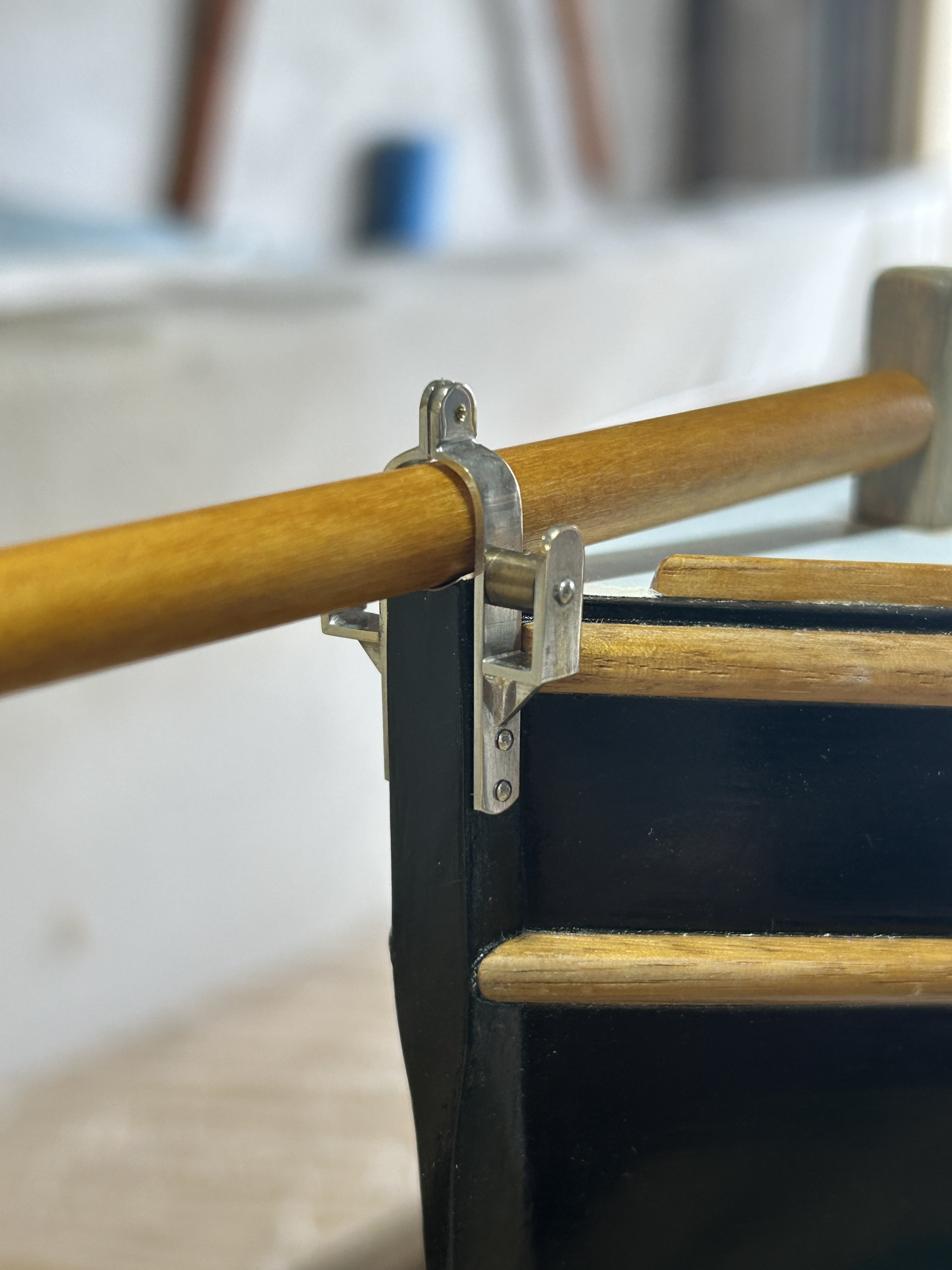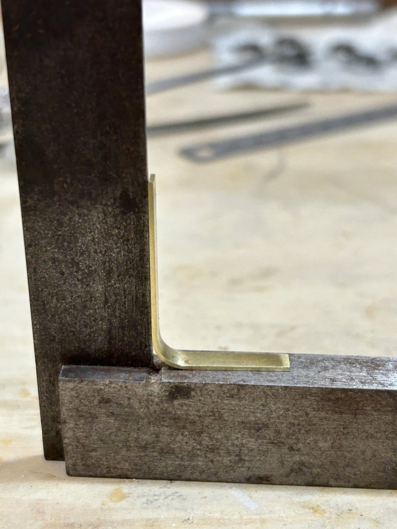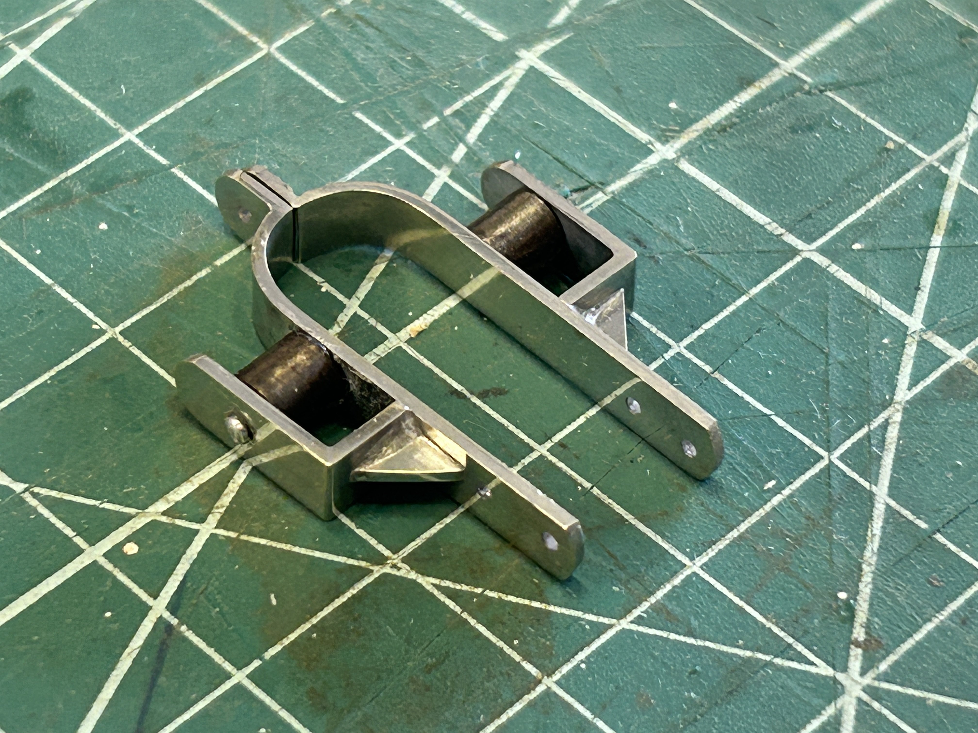 Thank you. More metalwork, this time the gammon & cranse irons, & installing the portholes. The 'glass' was the right thing to do, & the effect of the reflection heightens the depth relative to the hull line. Thanks for the frank advice, it was good. The cranse iron done & on the end of the bowsprit, it's some tube, capped & with flanges. It's unusual to have the end capped, but looks good. The gammon iron is a bit more complex. Here's the actual: I had to cut some strips off 0.8mm sheet, then do 90º bends around a suitable rod. Adjust to square: The back-cut v joints for the 90º folds: Soldered: Then the brackets that take the bow rollers, plated etc. The rollers are tufnol I think, so they are coloured brass. And installed. The bracket at the top still needs a 'bolt'. The bowsprit on the actual boat is (what we call) Oregon Pine, I think is actually called Douglass Fir, so mid orangey brown, the scale one is Limewood, with enough coats of shellac to get the colour. thanks all,