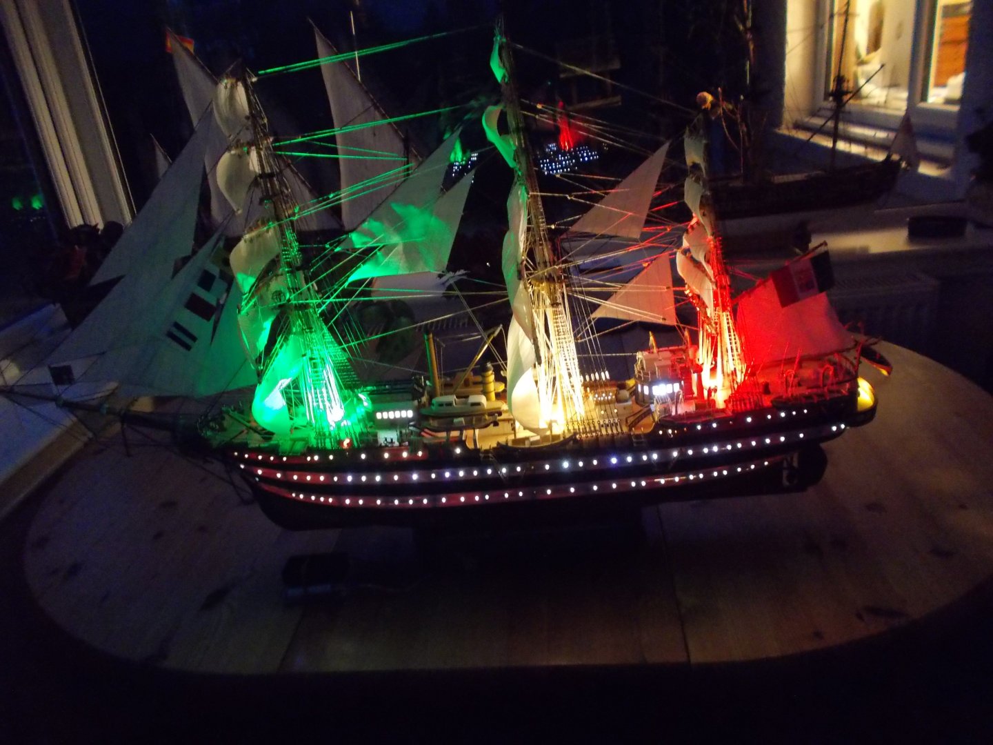 The rest of the sails on now and most of the rigging. Some long bilateral ropes to go on to the yards and down to deck level through strange extensions on the sides of the hull. Lifeboats to go on and the rear railings which I deliberately left until near the end to avoid trashing them with all the rigging. Then tidying up all the ropes and adding a flag of course!!
