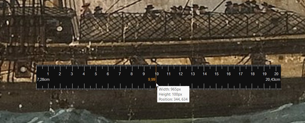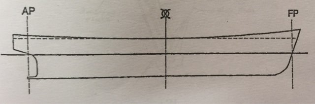I had to search for it myself.. The reference for the 16 cast scuppers is only in my paper-version of Tyrone Martin´s "A Close up" from 2008. It contains a bit more information than the online version from 2003. What may be a "casted scupper"? This is an example of a casted part, which might have been what the text talked about. The shown lid is a casted "scupper valve" found in the collection of the Royal Museum Greewich. But of course the "cast scupper" may also just refer to a stub end of the scupper - made as cast part. But as the "casted scuppers" are mentioned to be fitted in 1814 we may assume that previously to that date there wasn´t any "casted" part. Which allows Haiko - pointing on the 1797 status - to not need to guess or show anything like this - but the scuppers as openings, material unascertainable for now. Could be lead, could be iron ... Why only in the center of the ship - around the ship´s waist? .. in most of the cases the waist of the deck is usually the most deepest point on the deck Principle sketch of a deck´s sheer - midship being the deepest point where water would flow to .. And also the side´s lowest point is in the region of the waist - due to the shape of the hull these are the lowest points on downwind sides of the ship in case of stronger winds. Now guess where the "deepest" point of the deck is right now? Where would you need the scuppers now? (Flying P-Liner: Pamir in 1905) For USS Constitution we think we also saw hints in Cornè´s 1803 painting we used as a reference: Here you see a detail view on the painting. Marked with blue are 2 "dark spots" - which are in positions we see as comparable with Roux´s President Paintings. The left one being just below the main channel, the forward one between gun 5 and 6. Just the center one would be .. either a) missing in the painting by accident .. or .. b) that ring we see where that rope runs through, was a misinterpretation of Cornè in his sketch - c) wasn´t THERE .. and we had only 2 scuppers in the spar deck level - and 6 in the gun deck level. As c) seemed not very likely - you would want a scupper in the center! - we decided that a) or b) are valid .. and therefore there would be an opening needed in between those two dark spots .. Haiko marked the spot: Funny coincident: that ring in the center? ... is were we would expect a 3rd scupper?.. right? Hm.. option b) most likely? As we by now have found 3 positions - comparable to Roux´s President - we can assume the other 5 scuppers to be placed somewhere on the gun deck level as we see it in the Roux paintings - even if we can´t see them in Cornè´s painting. They would be a bit lower where the gun deck itself would be. And they might be - just as Roux shows it - one plank above the air vents. This is (partly) a very weak chain of evidence, we agree .. but .. its the best we can offer for this essential feature for now.
