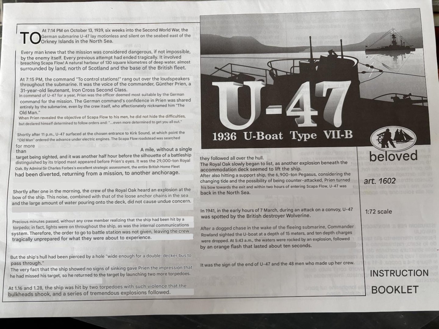 U-47 by RVB (Rick) - Amati - Scale 1/72 - Length 92.4cm or 36.38 inches - marketed by Model Shipways c. 2013