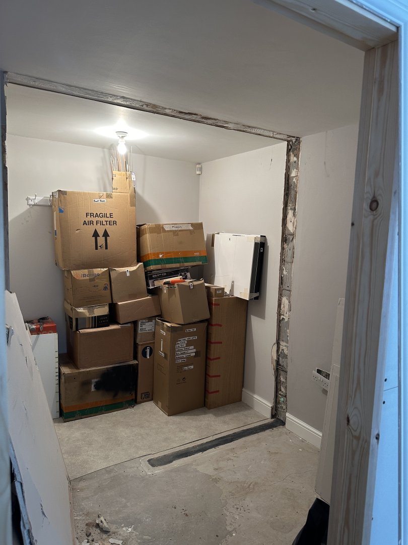 1. House move complete but original boat room was far to small, so walls out and new in, floor levelled, lights to be installed but room walls are complete but not kitted out yet.