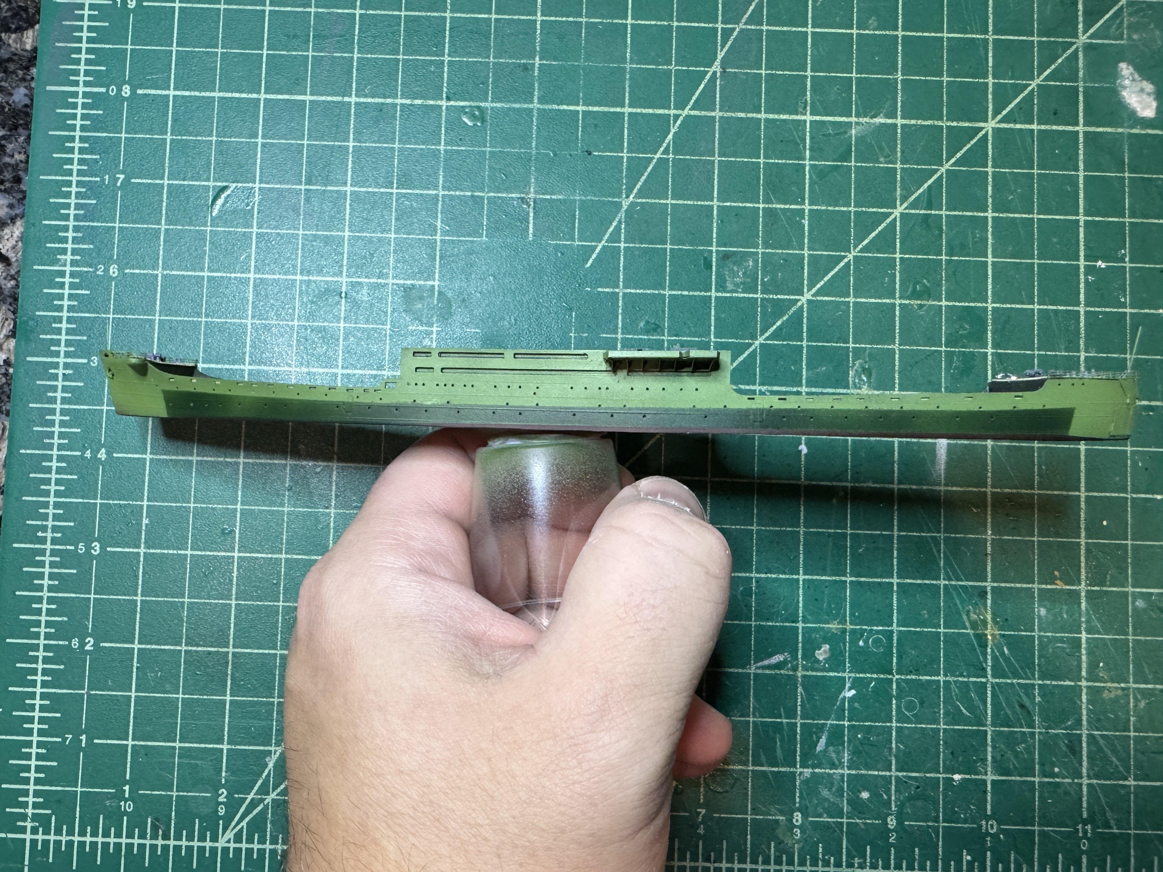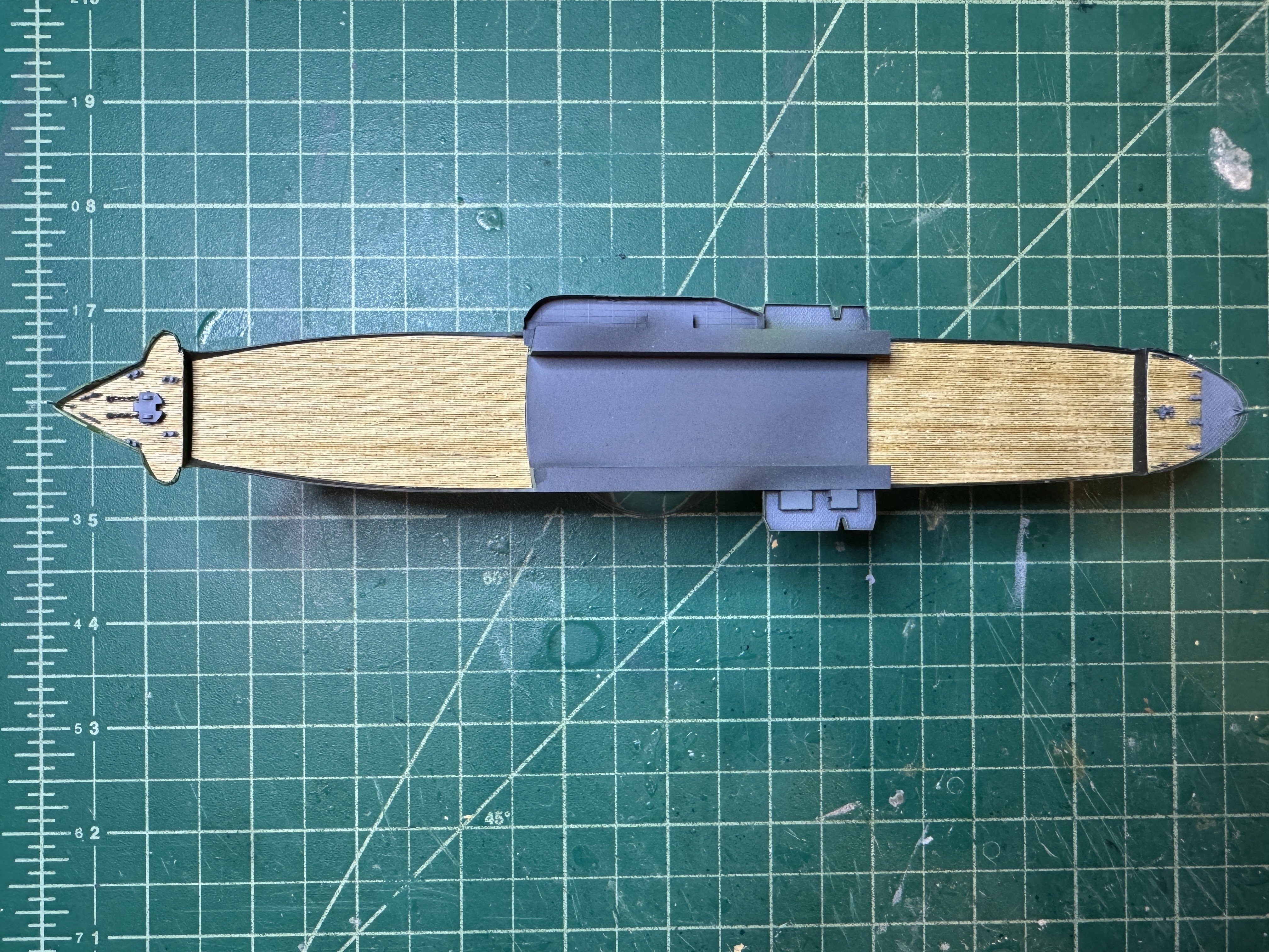 I circled back to this one and made some good progress. It's a little tricky for this kit in that although Five Star did a great job making a kit that is a lot more to scale than the Aoshima kit, especially with the included resin and PE parts, the issue is that some of the details are omitted so I've been using the Aoshima kit as a guide to figuring out what I need to add. I painted the hull in the typical IJA camo scheme: Next I glued in the wooden decks that I cut out of a generic 1/700 wooden deck sheet, and I've been adding the various details to the deck including bollards, anchor chains, winches, etc.: Before putting on the flight deck, there's a lot of details that go on these interior decks - pipes, bollards, stairways, platforms for the carried planes and vehicles, etc. I've got most of those all painted up right now, so it's just a matter of figuring out where to place them so that they do not interfere with the supports for the flight deck. Thanks for looking in!