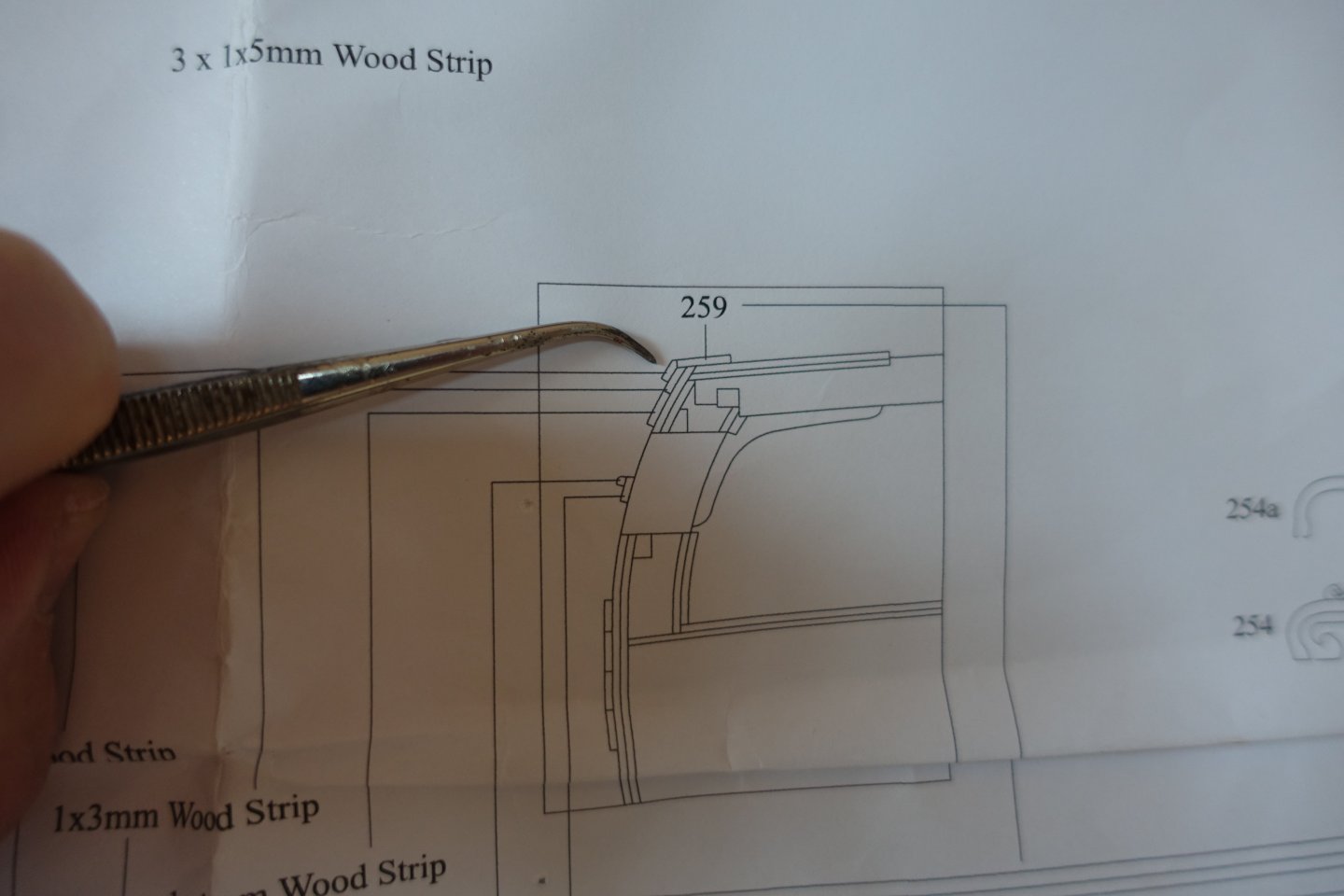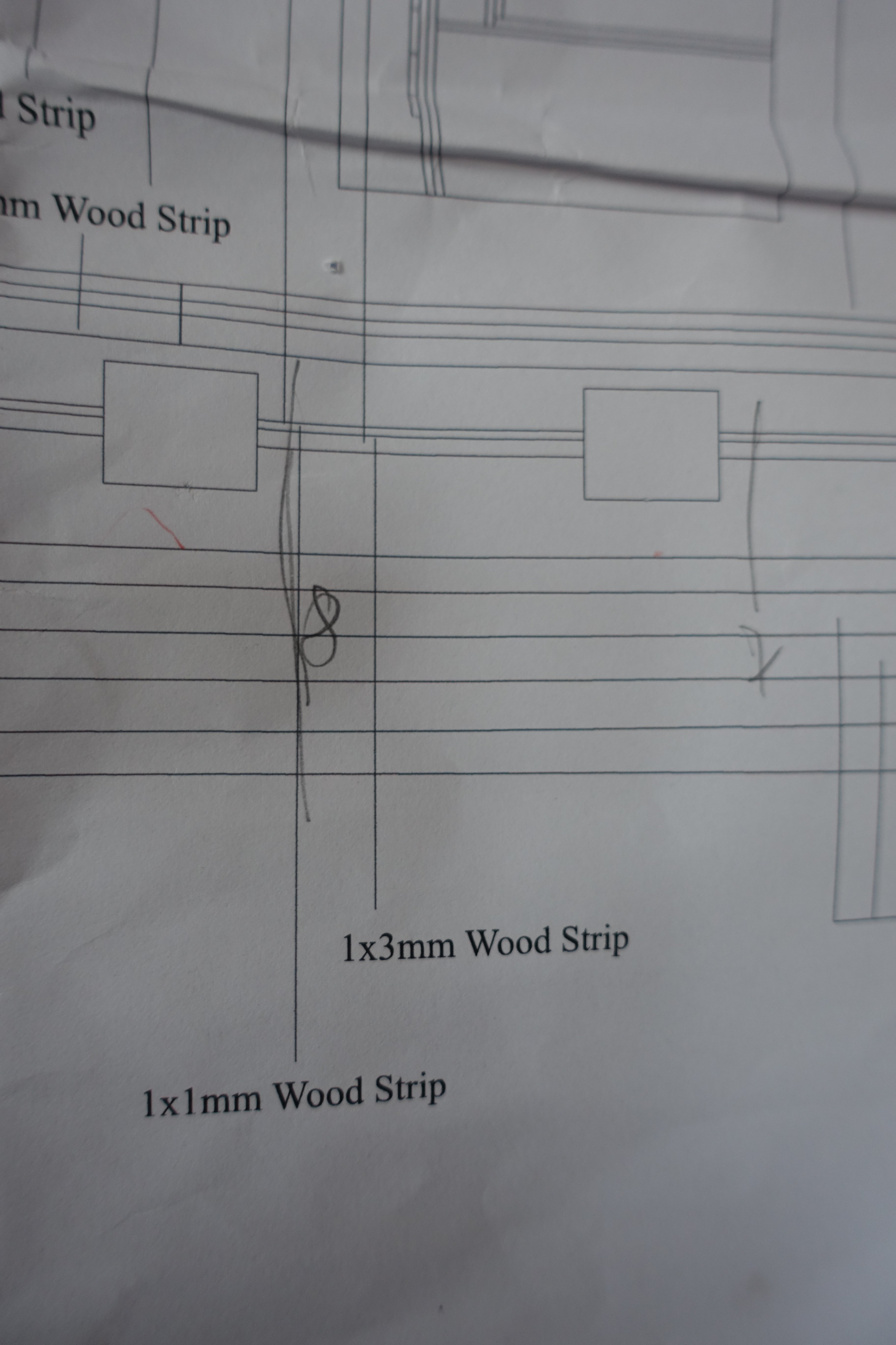 -------------- Deck beams Attaching the deck beams proved to be somewhat more difficult. A lot had to be filed down or removed. For the beams for the forecastle deck, simple bevelling was sufficient. The levelling was checked both in the centre and on the side. Fitting the deck beams of the quarterdeck was more difficult. On the one hand, a relatively large amount had to be sanded off the beams themselves. However, this was still not enough. In order to fit them, I had to remove a relatively large amount of the vertical MDF structures, partly restricted by the wiring for the MDF lighting. I filed alternately on the starboard and port sides to create additional space for inserting the beams. For the second deck beam (QD9), I had to file down the bitts a little, otherwise it would have been too high in the centre. The bitts will later be sanded smooth and painted over. The levelling of the quarterdeck beams was also checked in the centre and on the ship's side. One deck beam (QD 14) is missing in the picture. This can only be fitted once the longitudinal beams have been attached. There is a small note about this on the plan and also in the Blue Ensign description. When attaching the longitudinal beams, I noticed that they are not parallel. 793 790 791 However, the lack of parallelism corresponds to the plan.
