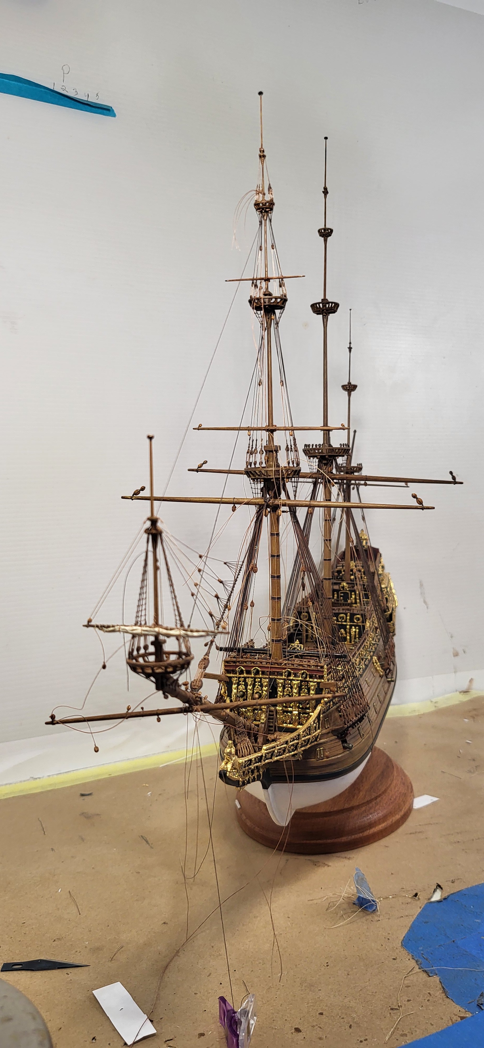 I haven't had a lot of time for my S.O.T.S but was able to complete a few steps, the topmast shrouds, burton pendants and the falls, topsail yard and blocks, parrel and securing the top rope, far from perfect but looks okay and hope you enjoy the photos. Up next will be the topmast stay. Thanks for looking. Michael D.