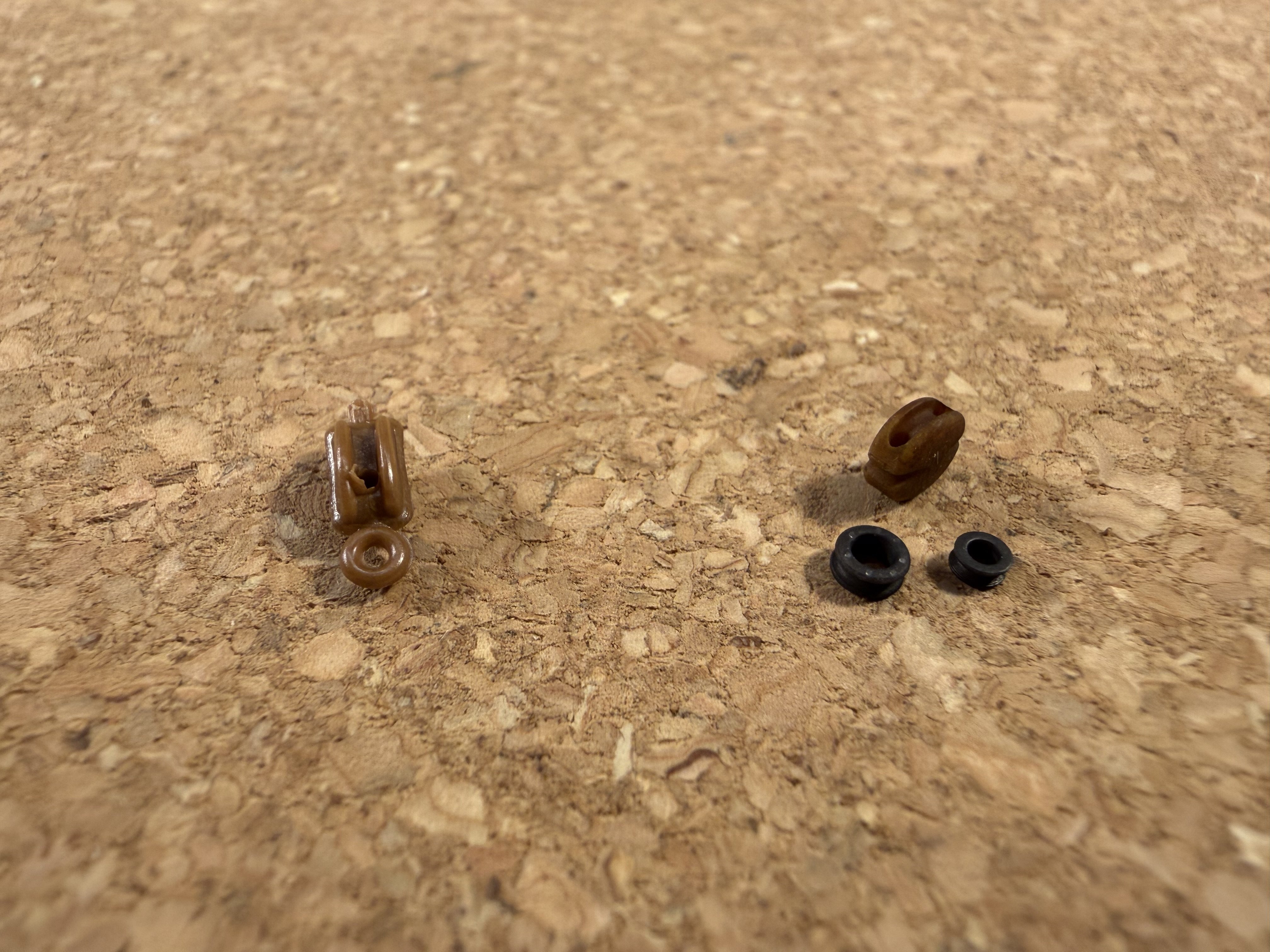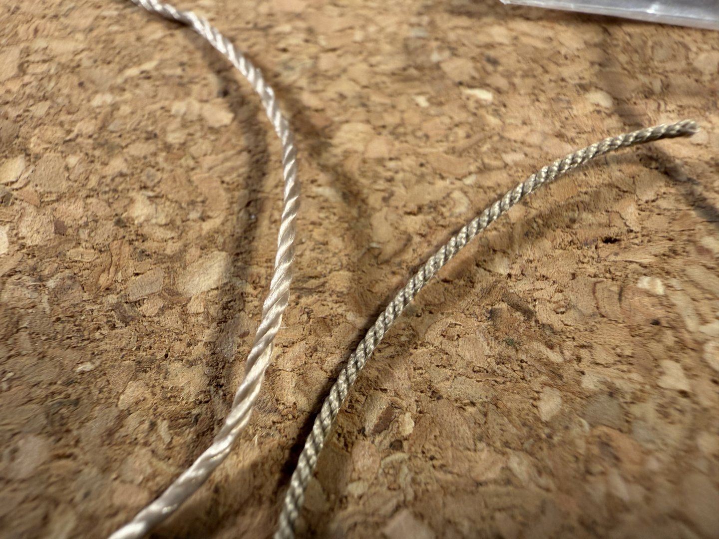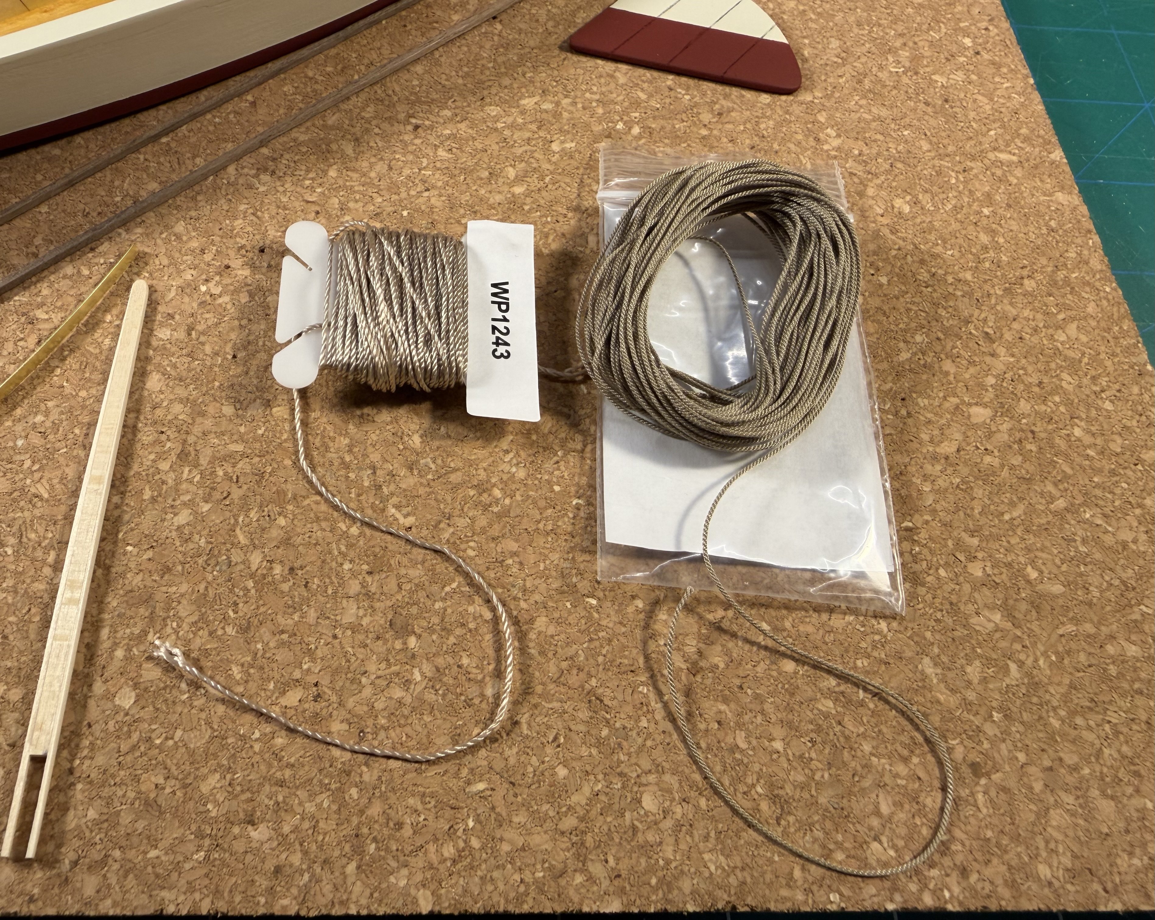 I’m replacing the Model Expo rope and blocks with ones I bought from Syren. In each photo, Model Expo is on the left and Syren is on the right. Obviously, no comparison.