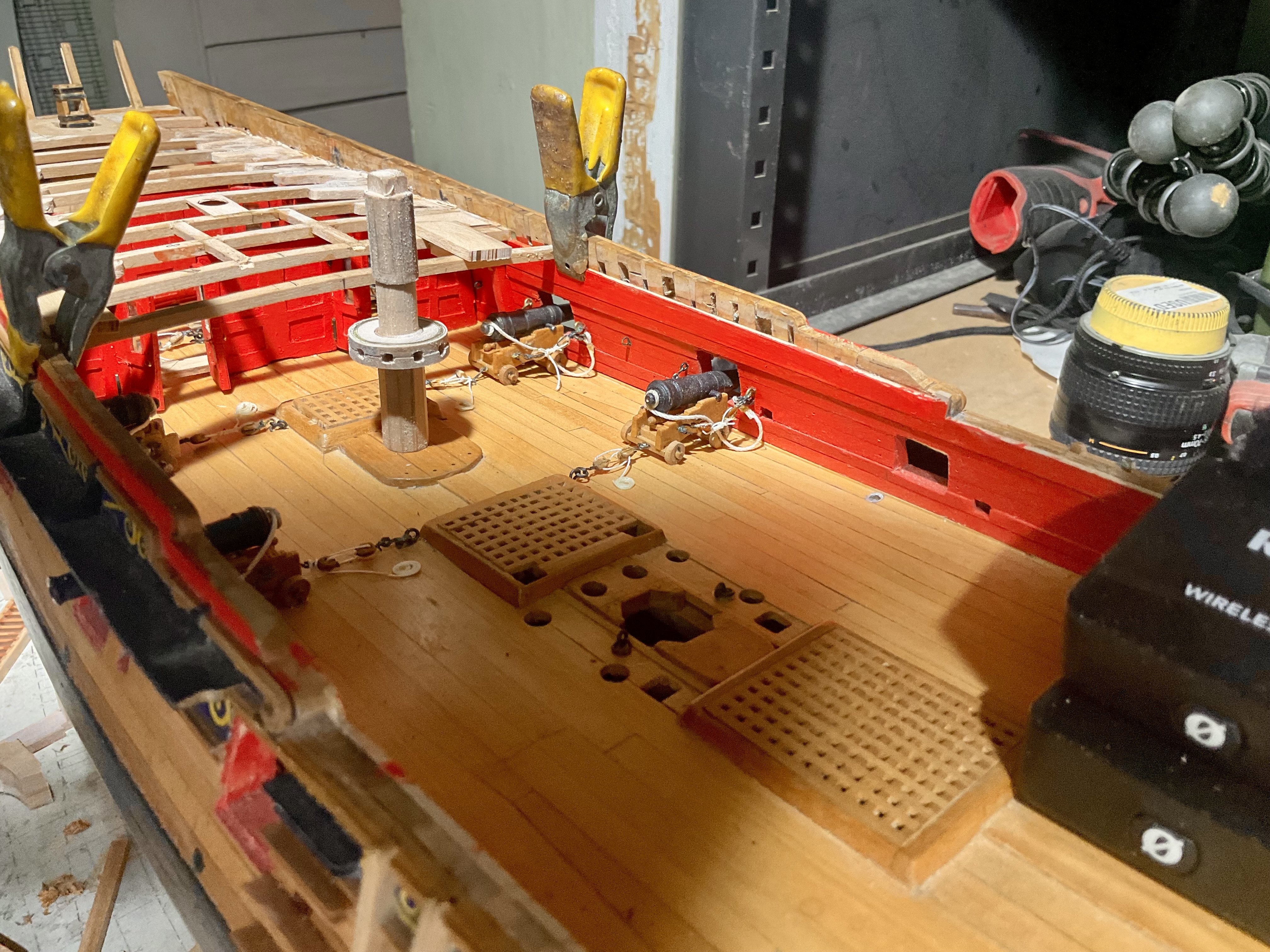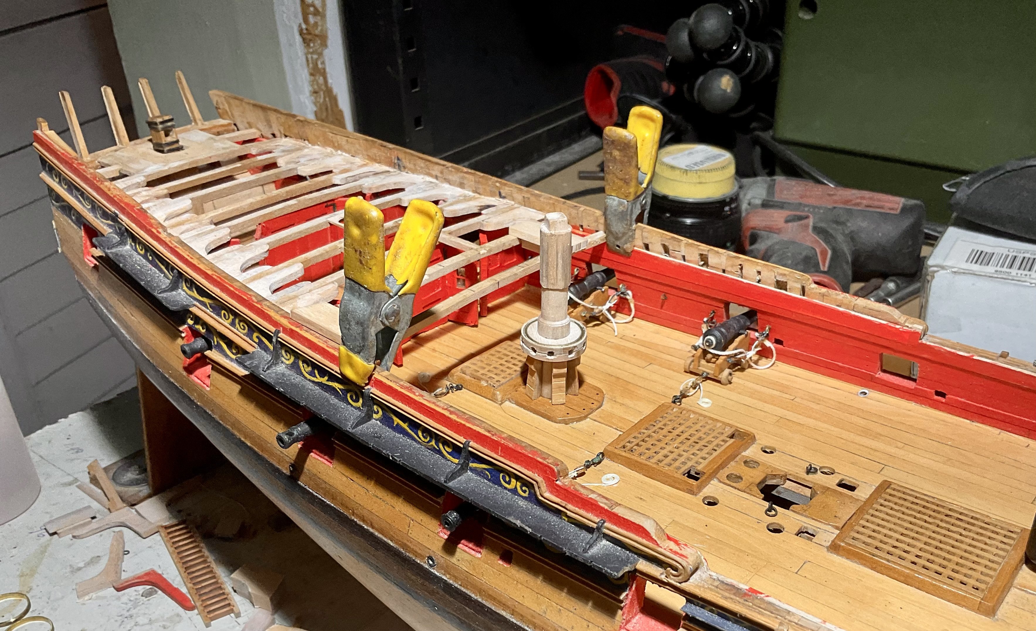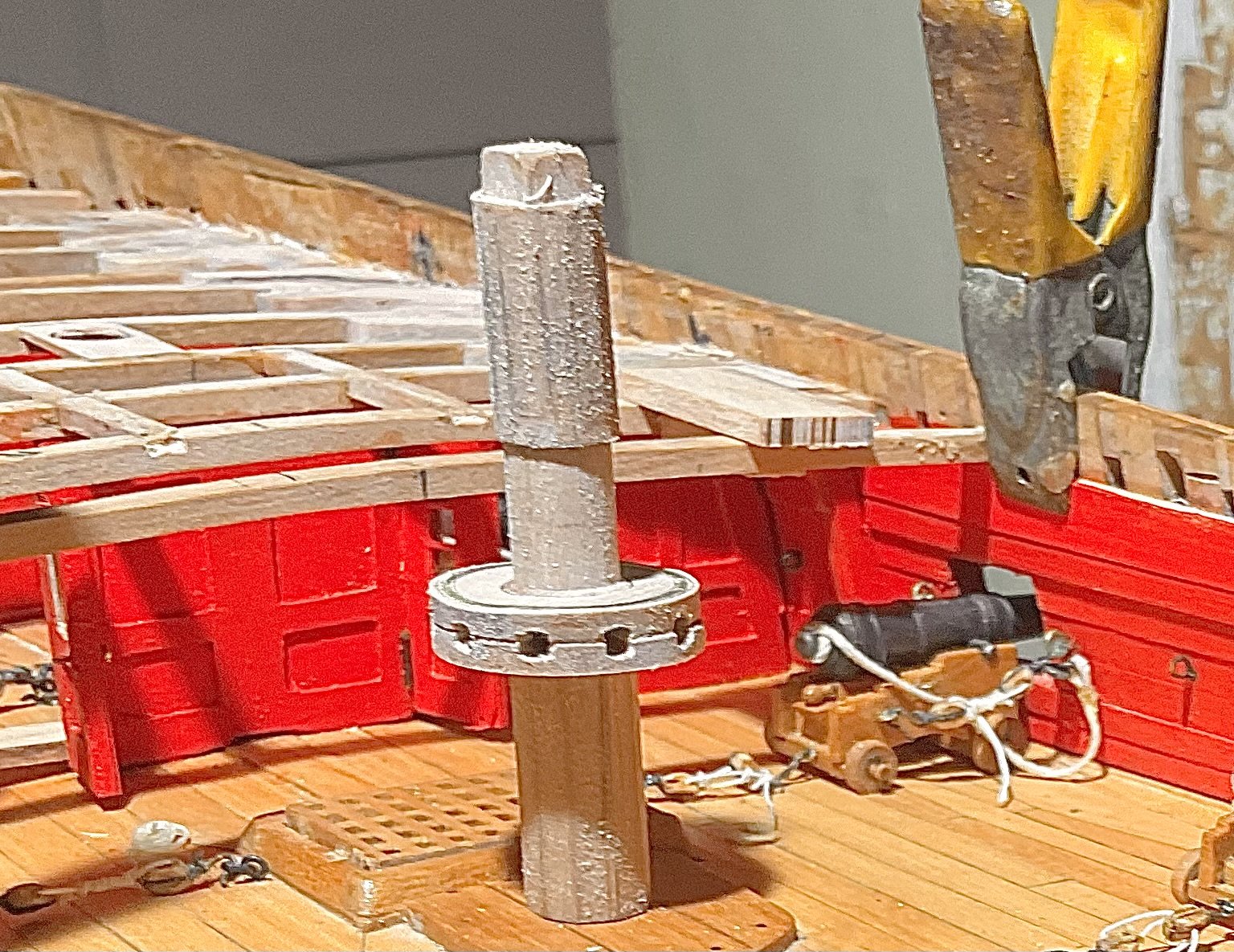 Not sure what you mean Alan, the step actually goes in three more beams that are not yet installed. The only thing behind the step are some blocks on the deck and the bulkhead.