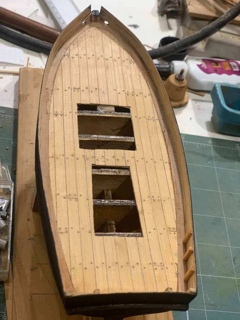 Ciao Shipmates! Today i want to show the construction of the deck, it is already installed by now. For start, i took a template from the model it self, then i made the layout of the deck furniture and other fittings, and then i took the template and i started to plank it. I followed a pattern that i found in an old italian ship modeling book, it turned out very well, at least it dosen´t look like "parquet" 😉and it looks very real to me. For the planking i used brazlilian pine, caulked with black glue (school grade), it leaves a very fine black line, very pleasent for the eye. And for nailing, i made the simplest way, just a hole on the deck, and then i put a peg on it, after that, sanding, and that´s it. The nails and the waterways are made of rauli wood, (Nothofagus alpina), a patagonian wood, wich in this case, is a very apropiate wood to use, who knows if maybe Piedrabuna really used it on Luisito. And now, pictures! Well, i hope you like it. See you soon!! Greetings Giorgio
