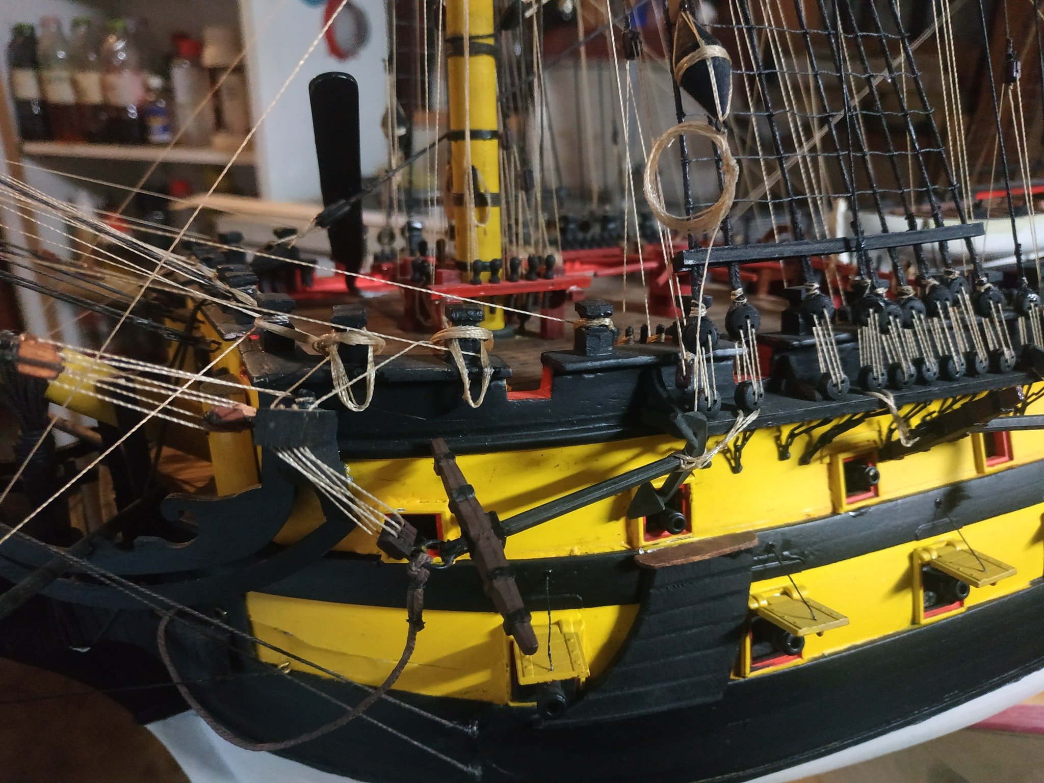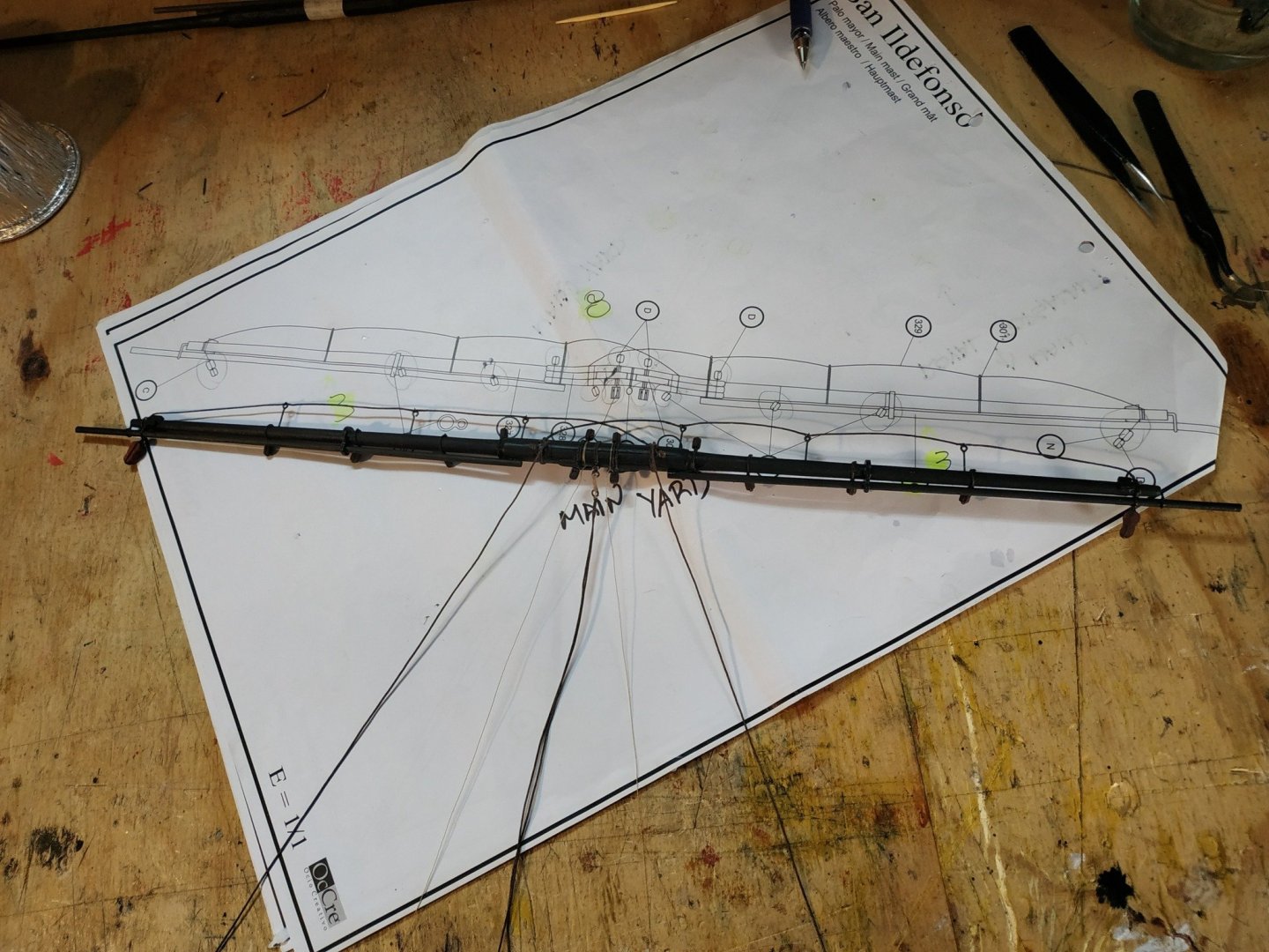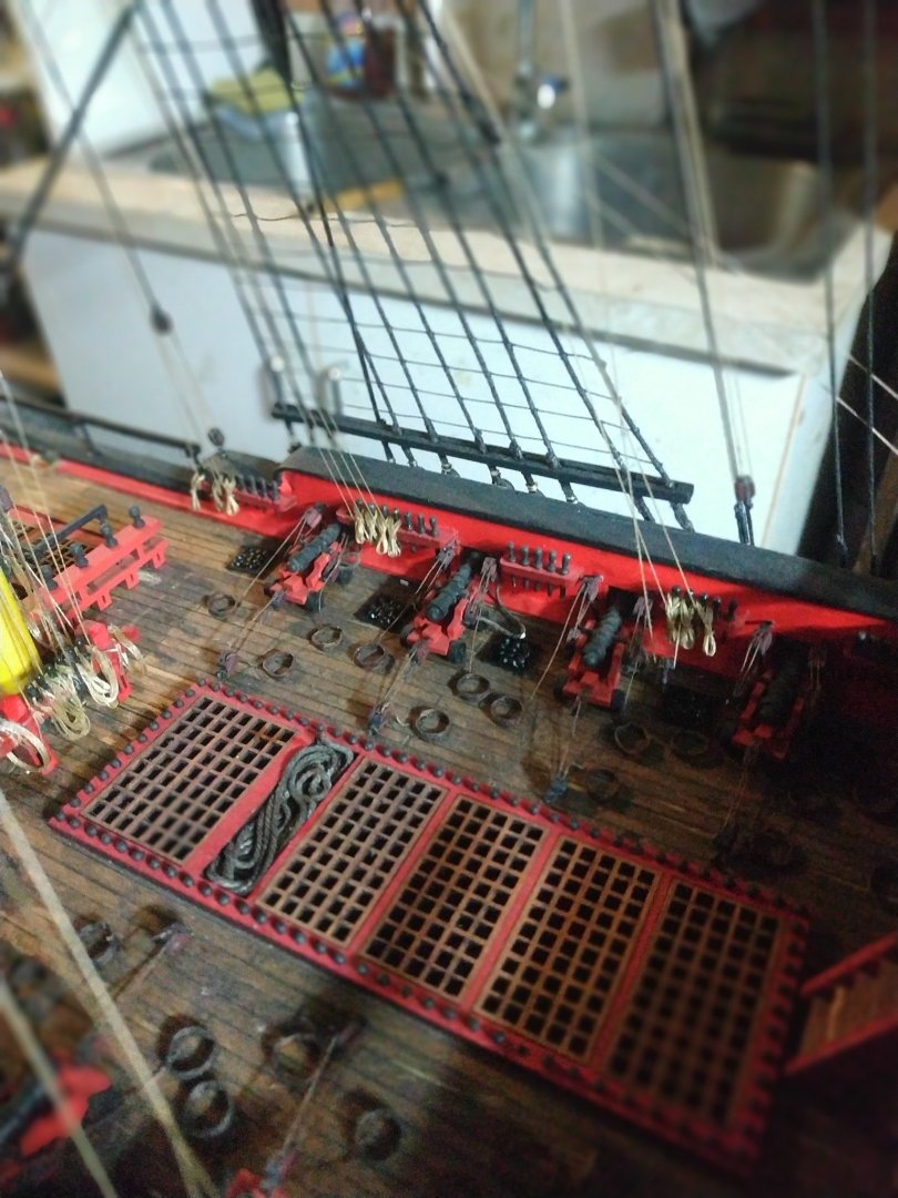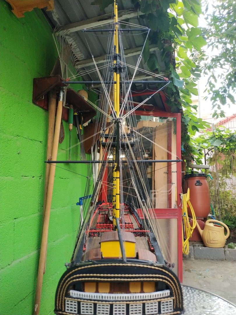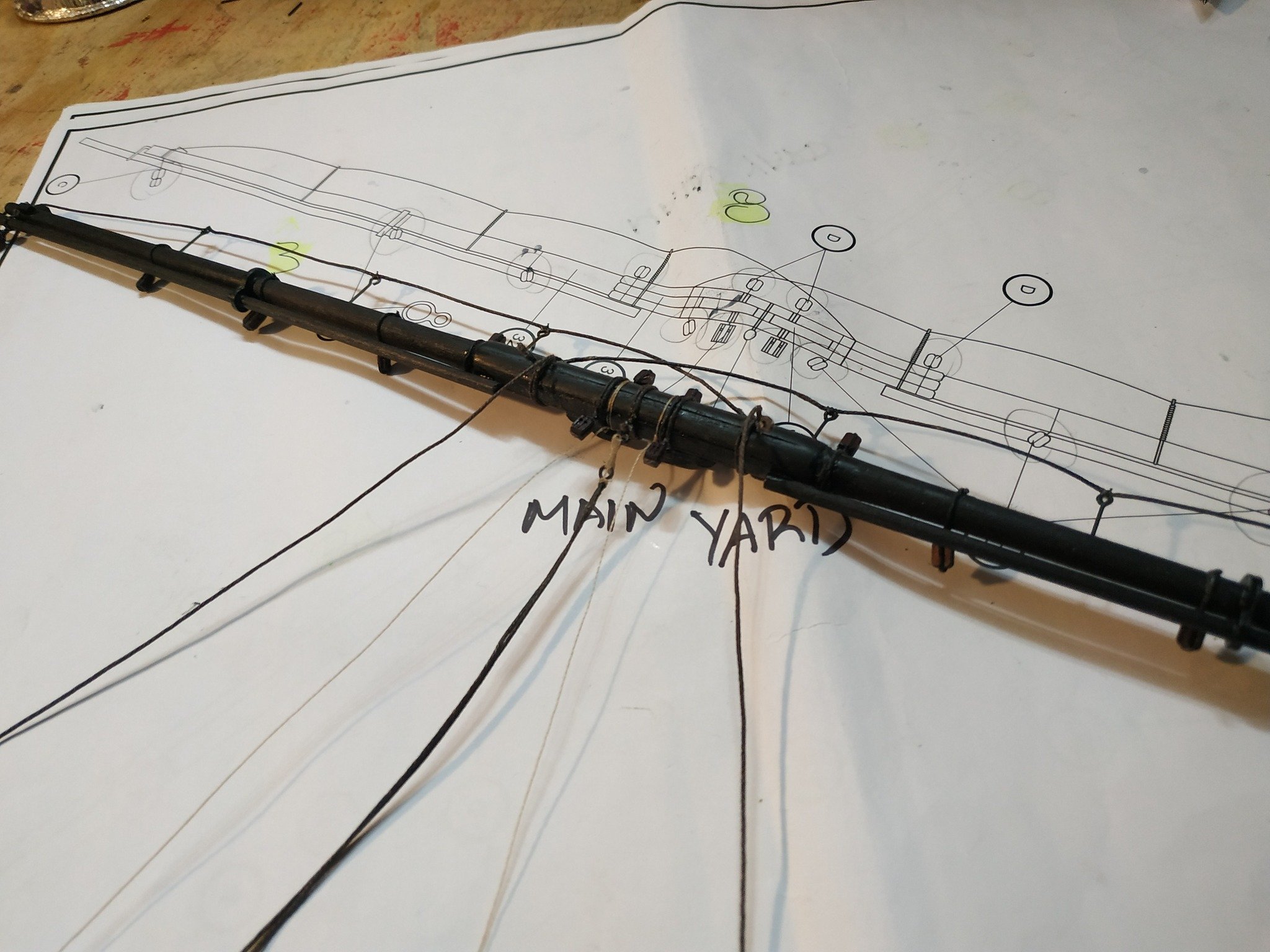 well guys. Here we are again after some years i decided to finish the model. Lots of parts are missing cause i had to move two times to new house. i had to organize to order some new lumber and rigging parts, i also laser cutted some parts my self. I modified the model according to Lenarth Peterson book ''Rigging Period ship models'' i'm in the phase of completion of the standing rigging so i am working on building the yards. Good times, the repetitive work of cannons and ratlines is finished. Here are some photos.