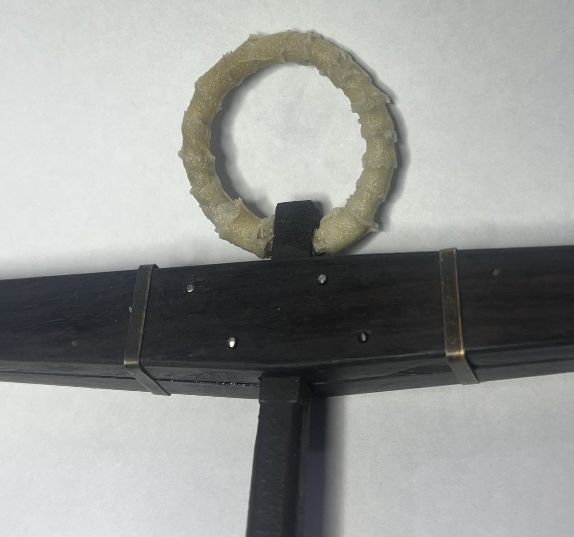 Ring is likely going to be replaced - tbc. Seems a little too thick once wrapped. wrt the cable - would this not have been wormed and tarred? I’m probably going to do that but can’t find any specific references other than a couple of pictures of HMS victory having a wormed and dark cable a while ago, and the uss constitution model at the Peabody Essex museum in Salem having the same. -