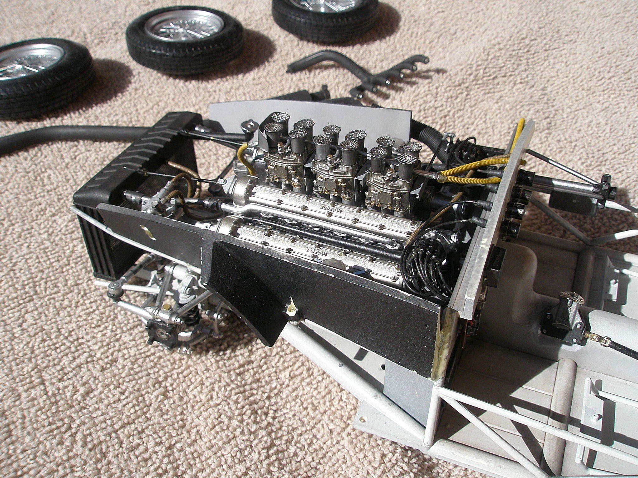 This is my recently acquired 1:12 MFH Ferrari 315S under construction. The model came to me as you see it here, the modeler decided to part out his MFH collection. For the time being, modeling time has been at the back of the list of important things to do while I recover from surgery and my wife and I take care of our baby great granddaughter during weekdays. Will get back in the swing of things, hopefully soon. Here are some photos of what has been done on her so far.