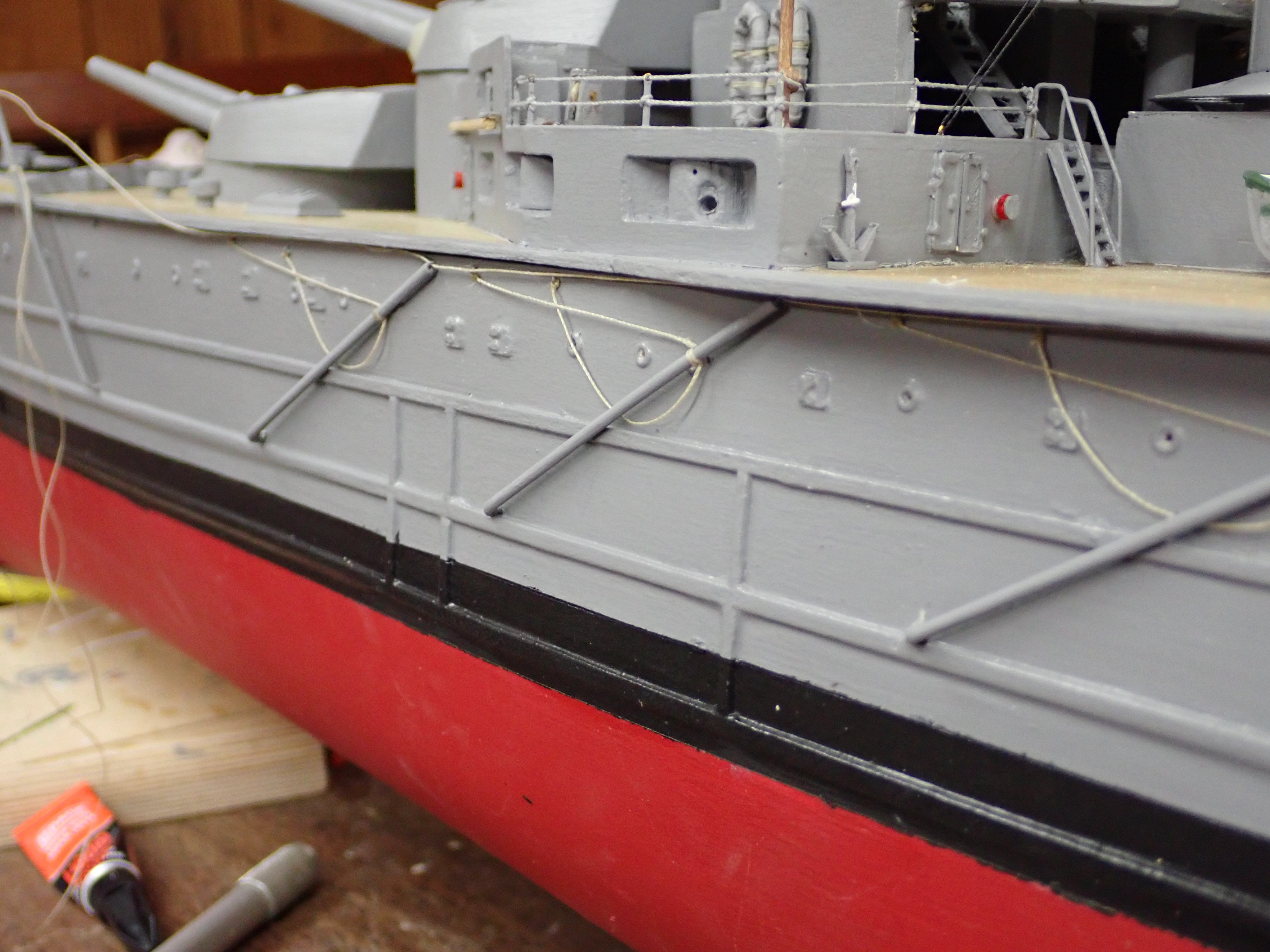 Keith, thanks but afraid not. The torpedo nets were massive - they were rolled up and lashed down on shelves running most of the length of the ship outside the main deck railings. In the 3D rendering image above, the net is the long black thing. There were "brailing davits" spaced at short intervals along the sides too, probably about 80 of them in all; I had already sort of decided to omit them since I already have to make about the same number of stanchions. 🙄 I have some brailed cord to dye black to represent the nets.