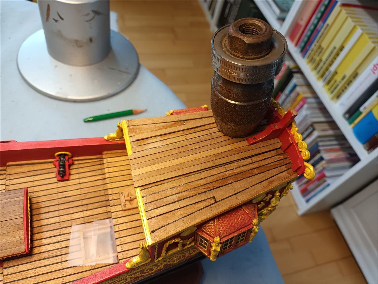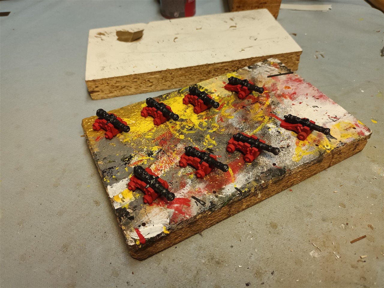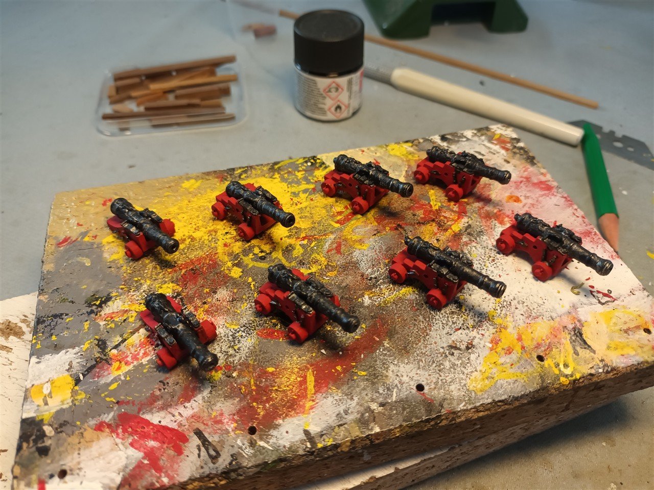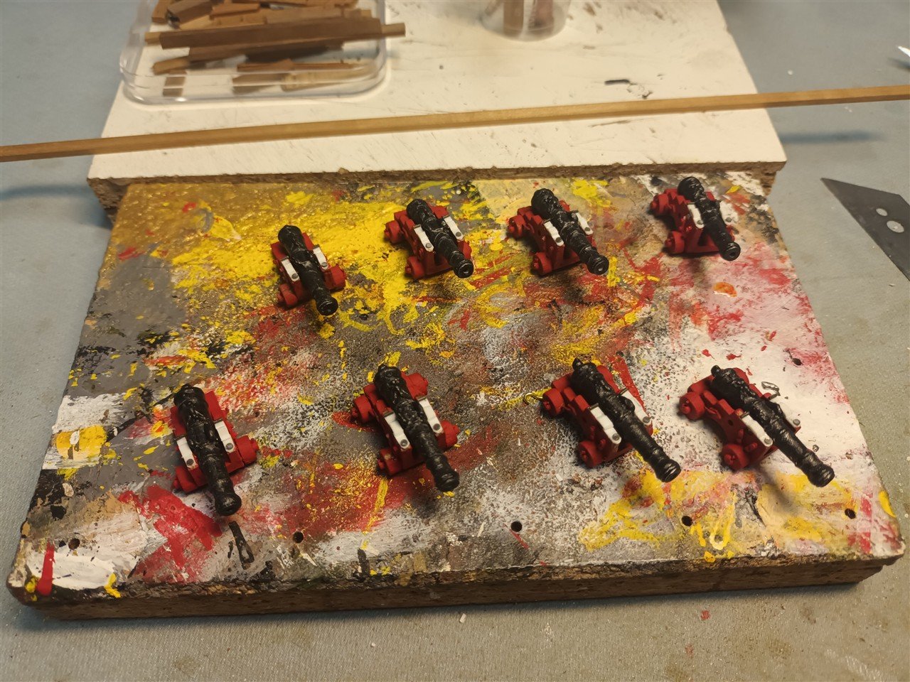 Further continuation, Toothpicks are for a stronger hold Channels The model is lifted up for each eyebolt to test for proper attachment (test passed six times). Painted Leeboard attachment painted The cannon production line Need on some cleening And some pictures from the exhibition in Amsterdam, last Saturday https://photos.app.goo.gl/ZsUupvtHr4EuuigN7