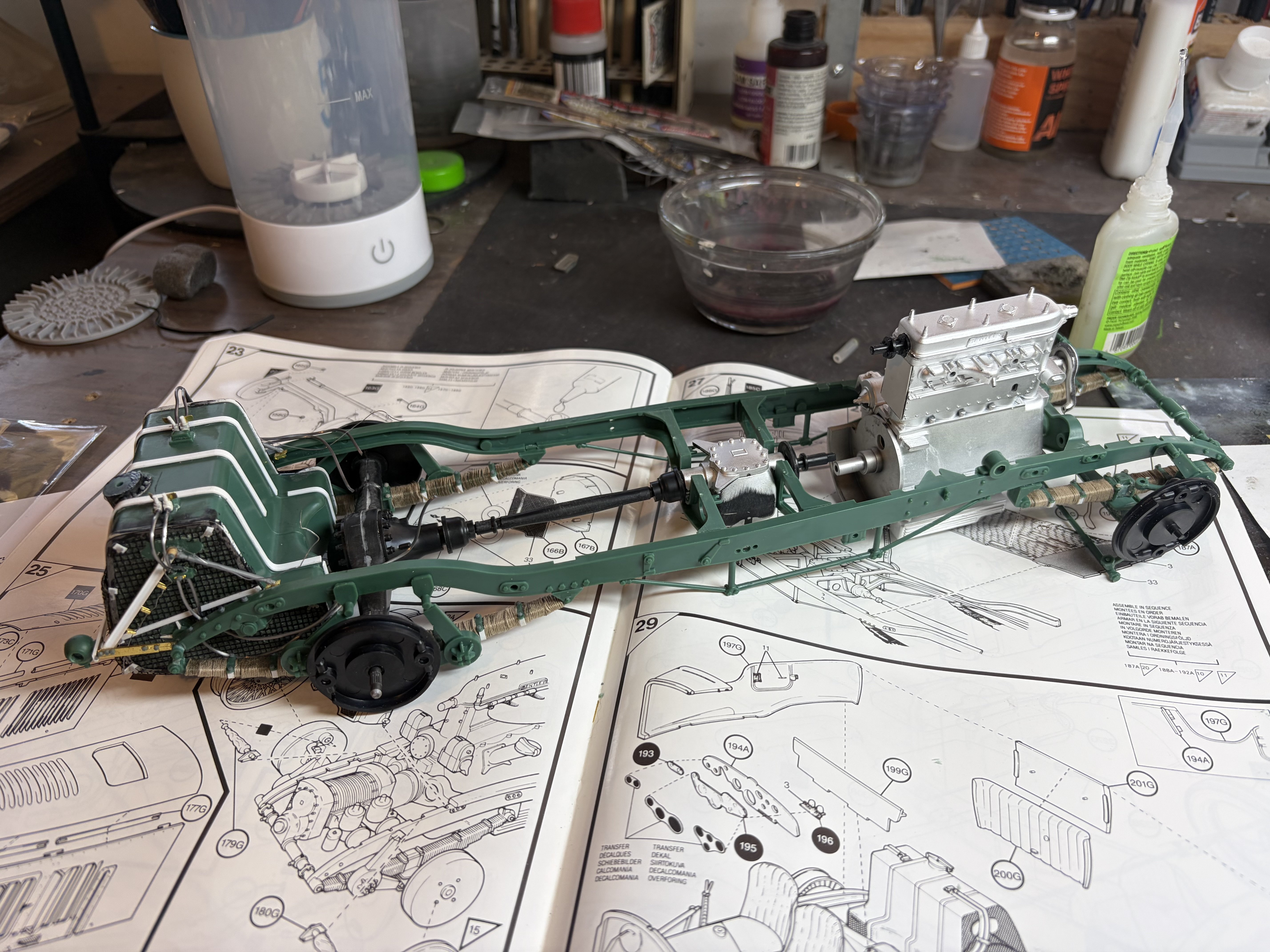 Done including wing nuts. Airfix completely ignores the rear brace bf for the lights and bracing for the fuel tank, that’s next -