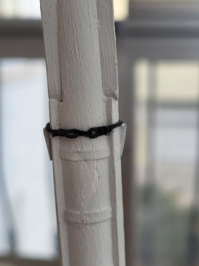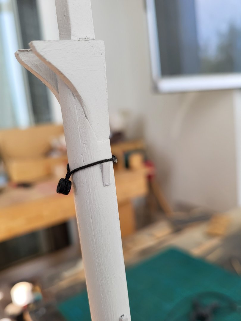 For trial purposes I formed a bobstay collar for the mast using a jig. I glued all the seizings with CA and trimmed excess ends. The result is good enough for me. I may have stolen some ideas from XKen. -