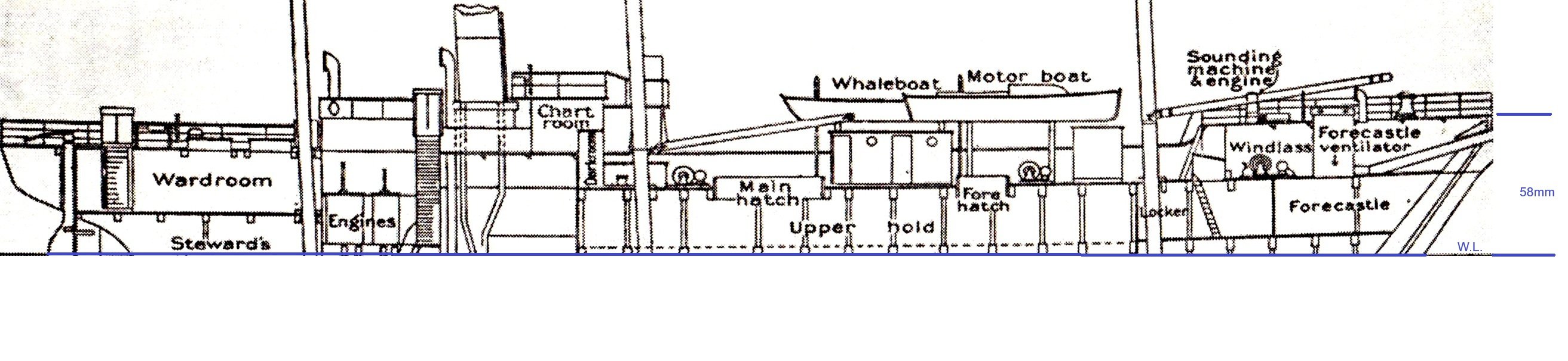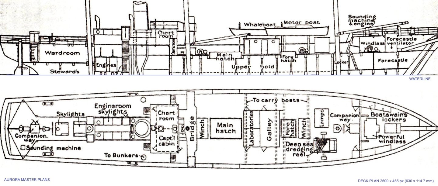 I am not aware of any detailed plans for this ship, except for the information provided below. Stem to stern (s-s) length is 50m (165'). A good scale for me is 1:80, making the s-s length 625mm. Other than these plans, the rest of the ship's dimensions will have to be transposed from photographs. This will be my first scratch build ship. It would be easier if I had more detailed plans and cross-sections. However, I can avoid a lot of guesswork by not including the hull below the water line _ hence the diorama. Having the ship in water. The idea came to me when I saw this small photo of the SY Aurora. I was instantly mesmerised by it. At first, not quite sure why. Then I realised the reflection of the ship in the water. Here is an ideal use for a mirror and a grey (cold) backdrop for a display case. I am still working on the Hms Beagle, and later, the SS Endurance. However, the SY Aurora is invisibly tied to the Endurance. I could not build the Endurance without the Aurora. So, in saying this, this scratch build will more likely start much further down the track. But in the meantime, I will be adding bits of information to this thread in preparation for the actual build.