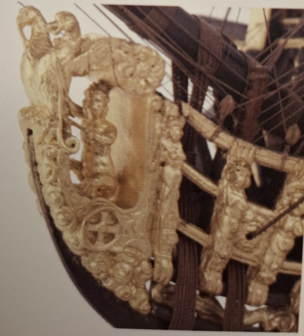 Hi Alexandr, That was really just a coincidence. I just opened my book Volume 1 Rogers Collection in Annapolis and there it was. Here are two better pictures. Also interesting: Rogers Collection Volume 2 page 34: Figureheads depicting Minerva and Neptun. (watch the helmet :)) and from the book Navy board ship models: Second Rate from 1675: SLR 0003 Allegorie of a crowned figure being carried over the water in a chariot, drawn by eagles. Same figurehead see SLR 0002 St Michael: And SLR 0386 First Rate from 1702 a figurehead depicting the abduction of Europe by Zeus. Matthias