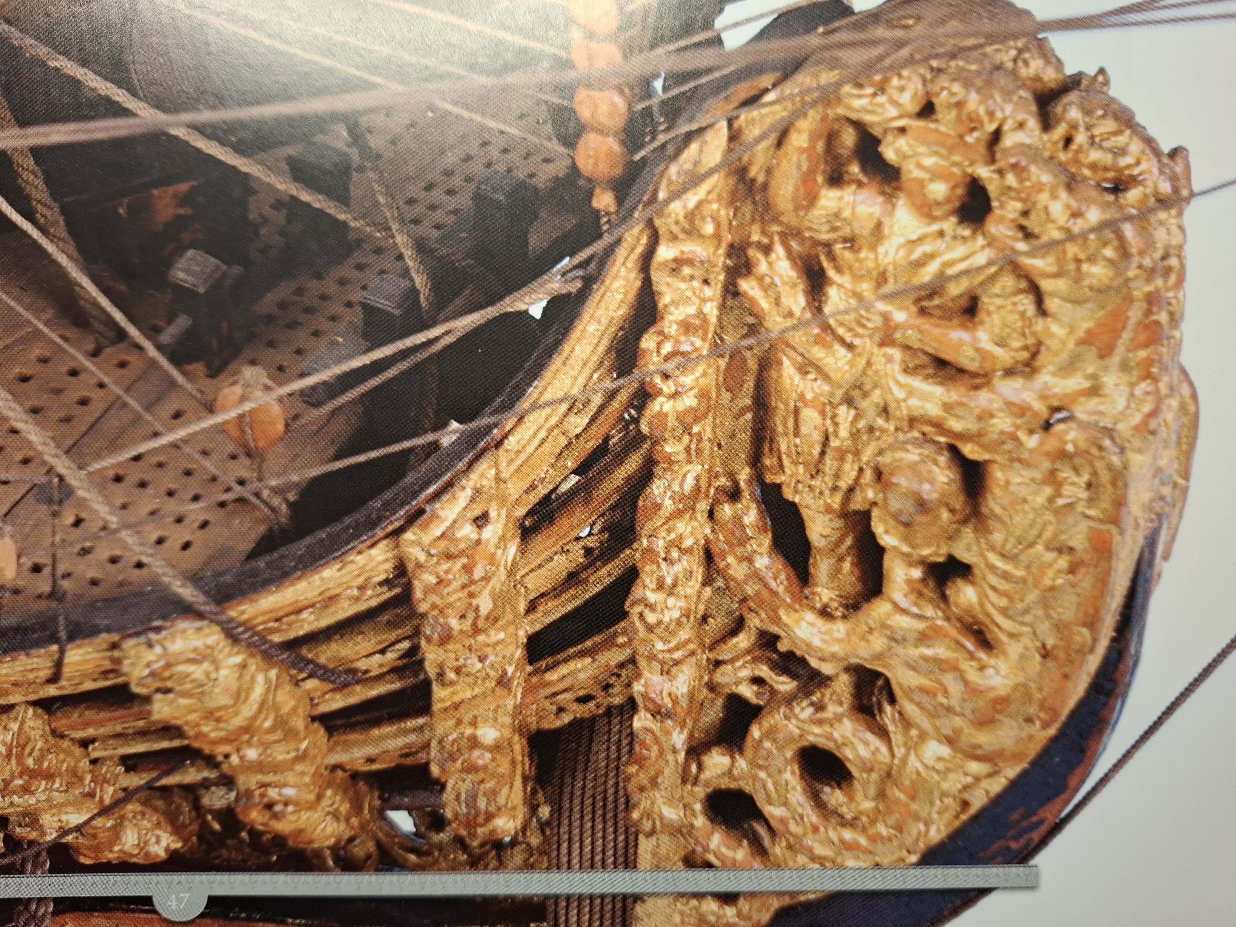 Hi Alexandr, I am going to use the Wax to make carving studies for the sculptures I want to make for my model. The posture of the figures are sometimes very twisted. I am just doing my first carvings, I have not much experimente in finding the proper body posture. I don't want to waste too much wood. The final Version will be boxwood like the other carvings. Here you see, what I mean. This model dates from 1748. The figures are made from wax. By the way, you were talking about the muscle armour of your figurehead. Here are two nice exampley from the Maritime Museum at Brest. Matthias