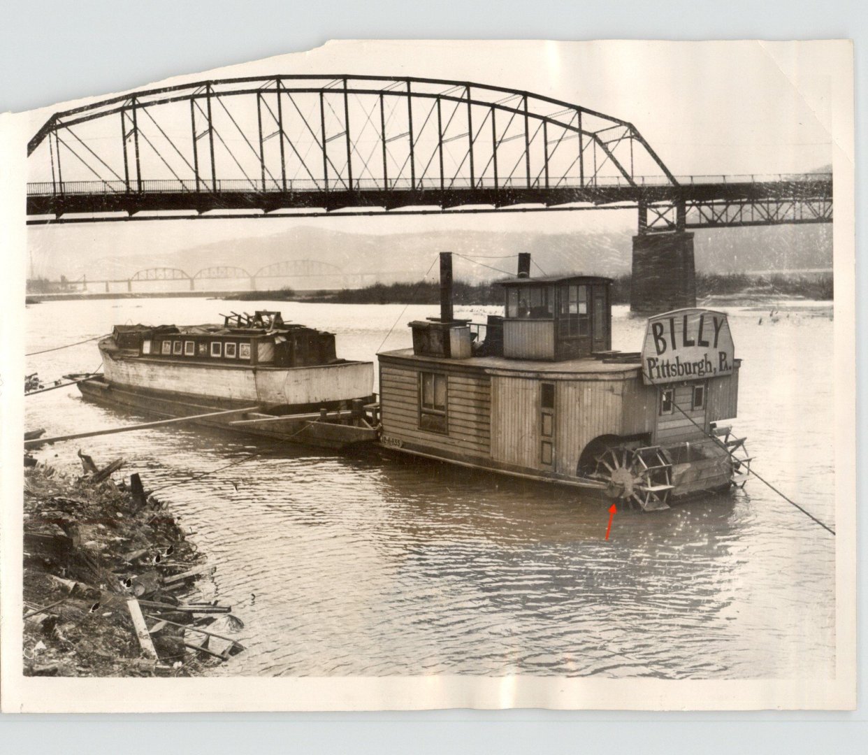 Tom, a door on the pilothouse fore wall leaves no place to put the ship's wheel. An inside stairway would mean it would have been open to the sky and elements and there wouldn't have been room in the pilothouse to have a stairway leading directly into the PH. As I noted in post #5, item 1, being a hand rail. The 'green' knee rail maybe a leftover piece of a salvaged porch rial leaned up against the PH? I'm not convinced it would have played a part in a stairway. I think the red handrail may sit along the starboard side roof edge? Creating the space necessary for a stairway at Billy's bow is a challenge that's way I favored a ladder until the question of how did Engel get heavy items up onto the boiler deck? There had to have been a stairway and a door, the how of it is the puzzle. When John enlarged the image I noticed that. If real, it appears to be a garden spigot with unknown reason for being. I know, I know, we are talking Billy here and reason seems at times sketchy. Due to the small size and not knowing the why of it I'm ignoring it and not including it in the build. Bob, if that's a stairway in front of the pilothouse it's completely plugged with junk and useless. Plus a center located stairway cuts into the center of the main deck structure below the PH. A stairway and door fitted into the removed corner on the bow/starboard side is making the most sense to me at this point. Tom and Bob, thank you for your thoughts and input.