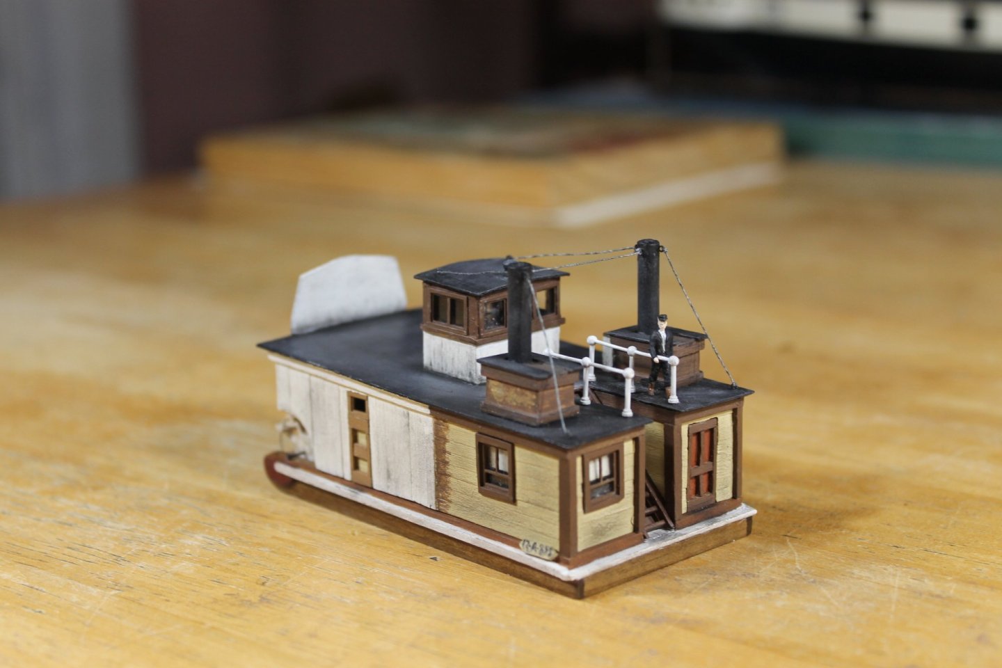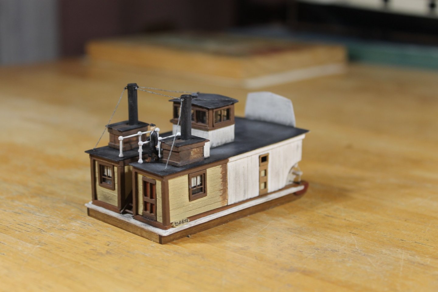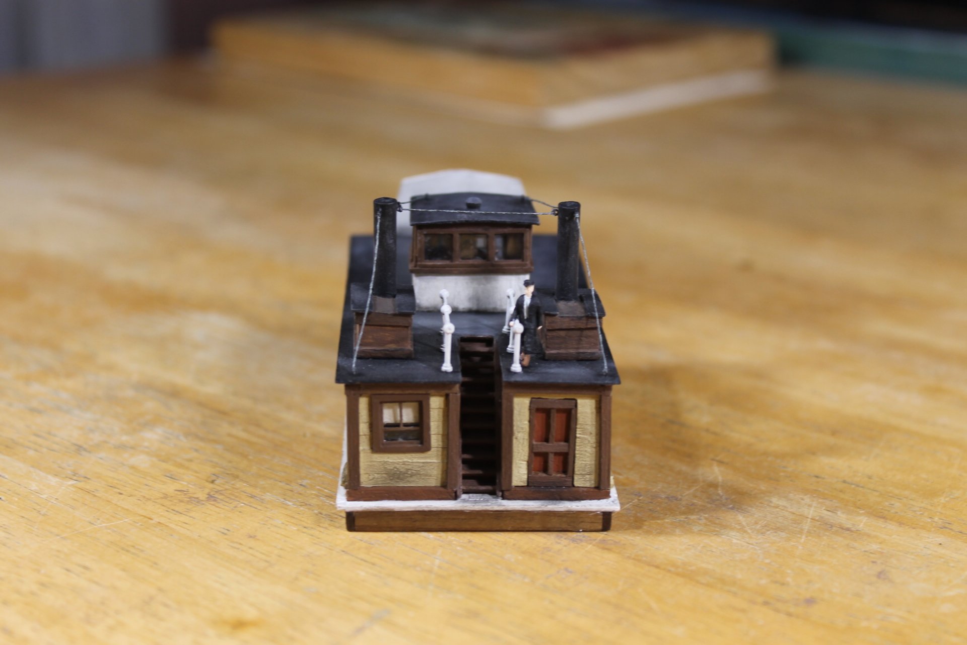 A huge thank you to each of you for following along, for the likes and the kind comments. Your support kept me going when difficult times arose during the course of the build. Billy is finished. After a mere three months my journey with Billy has ended. It started with a chance discovery on eBay of the press photo and press release and I was immediately enthralled by Billy's quirkiness. I've viewed thousands of historical sternwheeler images and Billy is unlike any sternwheeler I've ever seen. I knew instantly that Billy was a subject I wanted to try and model. I tried to adhere to Billy's photo as best I could till it came to adding the dummy stacks, I made the stacks straight. In doing so I moved Billy's timeline forward ever so slightly to a time when A. O. Engel would have had a chance to straighten them. It's here I have to admit that the straightened stacks was vanity. I dare say in time Billy will become separated from the press photo and I didn't want someone in the future thinking I couldn't manage getting the stacks straight. All I could hear in my head was, "the guy was a pretty good painter, you would think he could have managed to get the stacks straight". Once I had moved the timeline forward, at the end of Billy's build I decided I wanted Billy to represent Capt. Engel's finished dream of how he saw Billy in his mind. No lumber or junk on the boiler deck, everything nice a tidy with Capt. Engel at the bow taking one final look forward before entering the wheelhouse to start the journey south. I've enjoyed my time with you Capt. Engel, I feel like I've gotten to know you and you've become a friend separated by time. Fair journey and may the river run smooth before you. These aren't very good photos, I blame it a low camera battery. I promised Keith Aug I'd take and post photos of my working fleet, hopefully the photo of Billy and the rest of the fleet will be better. Again, thank you. Keith