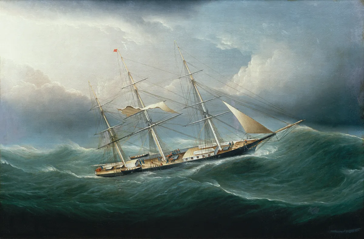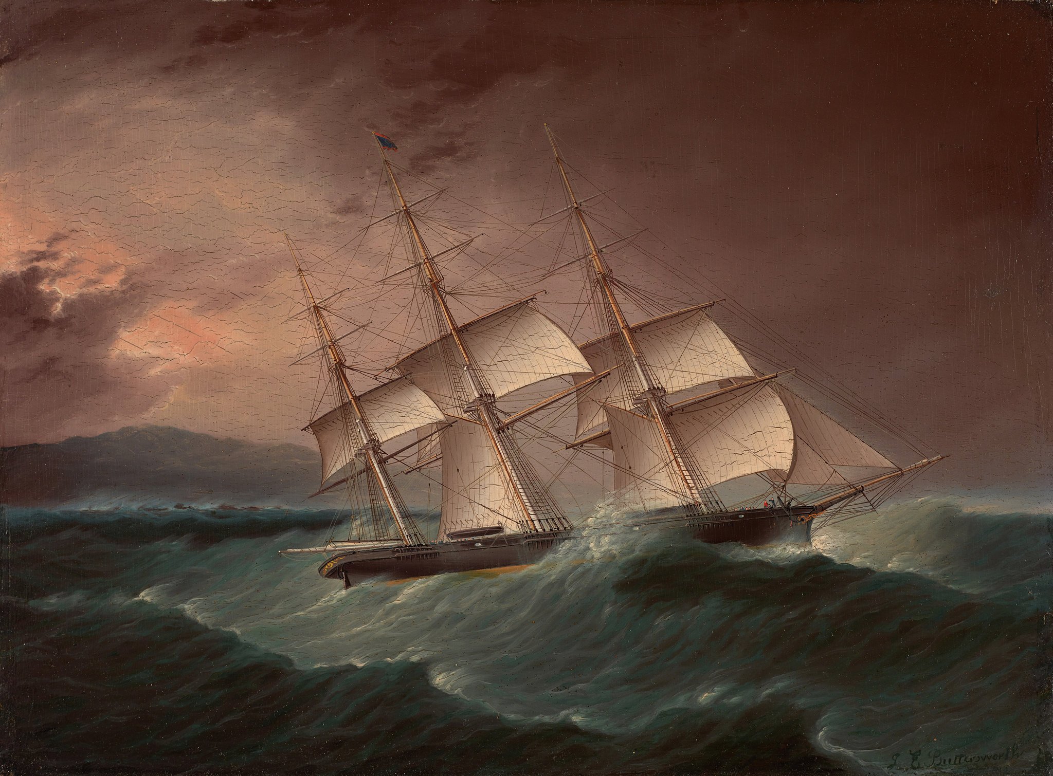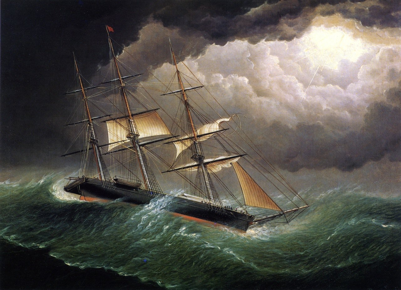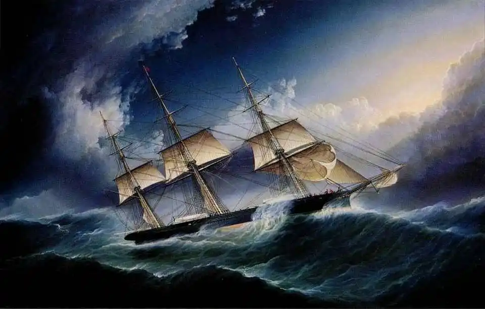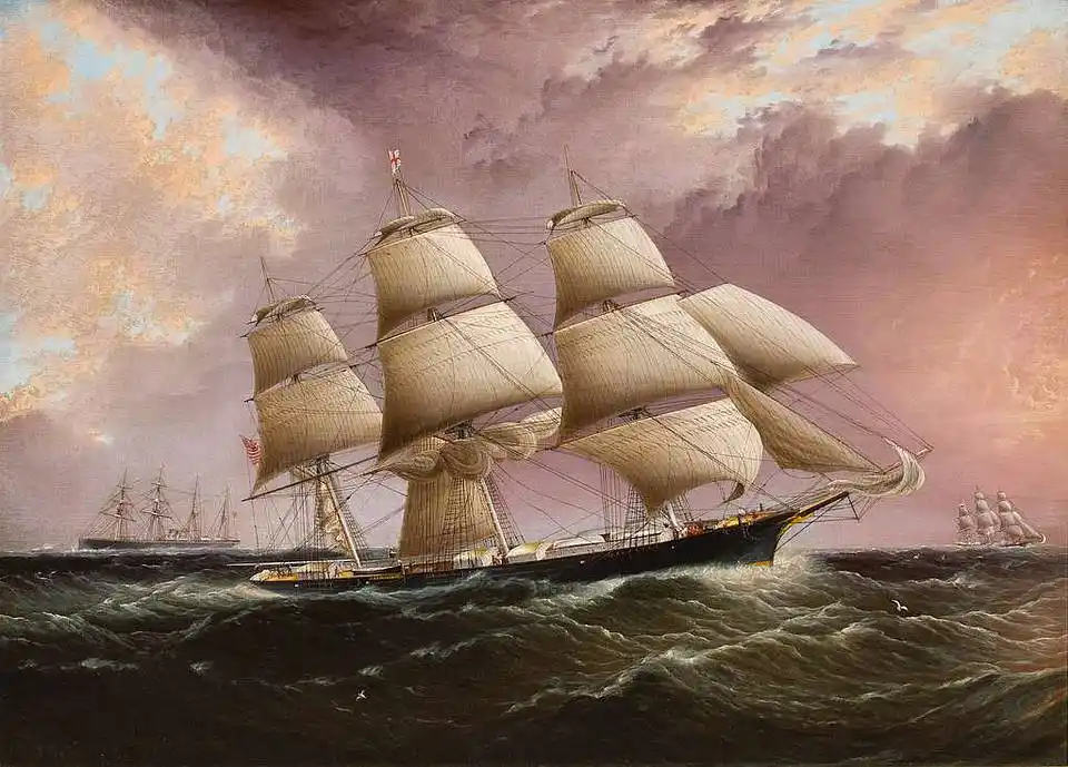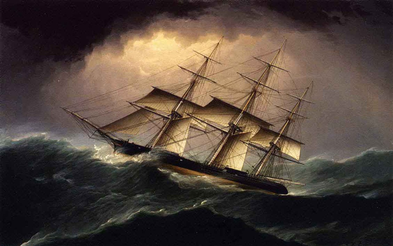 I concur that she had 5 yards per mast...generally. Lowering skysail yards and all the rigging associated with it was a difficult task....not to mention, done hastily during a sudden squall or during a stretch of severe weather. It was a common practice to do so when entering long stints of extreme weather....namely rounding the horn.....or below the 49th parallel, .to reduce these fixtures to prevent the trouble of demasting. In lighter fair...(Tropics), these yards, along with stunsail booms were added to capture the slightest of breezes. Both of these Buttersworth paintings depic, vessels in squalls or extreme weather. Hence the shortened rig. One last note: When many of McKay's vessels were originally launched, they were only rigged with the highest being Royals...because the area was the same...just, that the sails were larger. As sail plans and designs evolved...double topsails were added, topgallants, even upper and lower topgallants, royals with skysails and extreme moon sails topped off the plan. Crazy. Rob