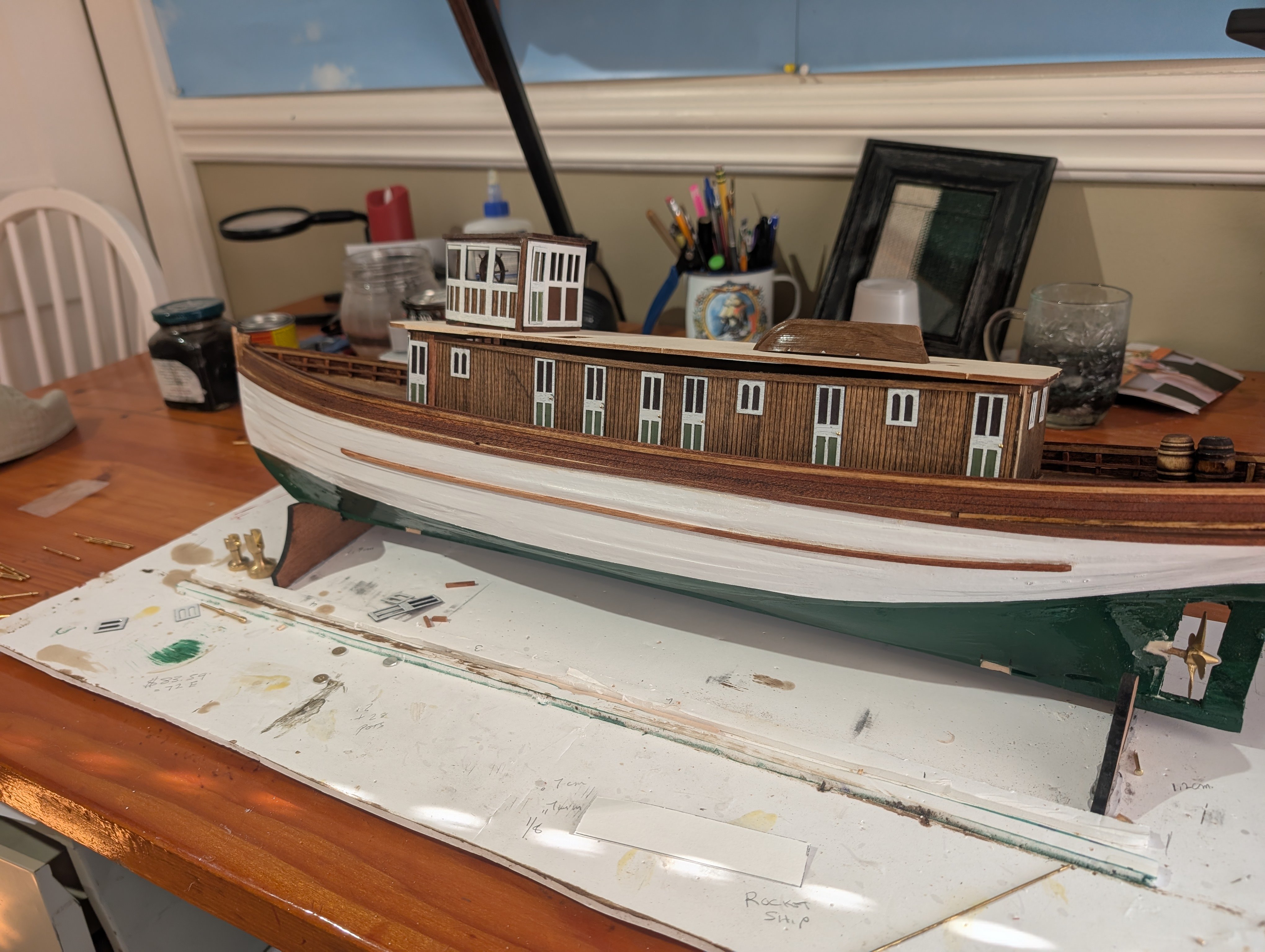 Taking a little break from the Seguin build (Big day coming et al). Gave me a good excuse to tidy up the work table. Took the opportunity to order some additional items. Decided to put scribed boards on the top deck rathers than just painting the bass wood. Also ordered nice brass stanchions from Harbor models. Have a wonderful holiday everyone. Phil