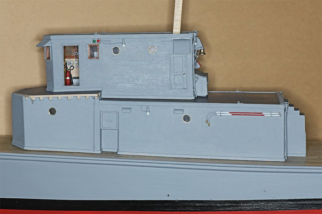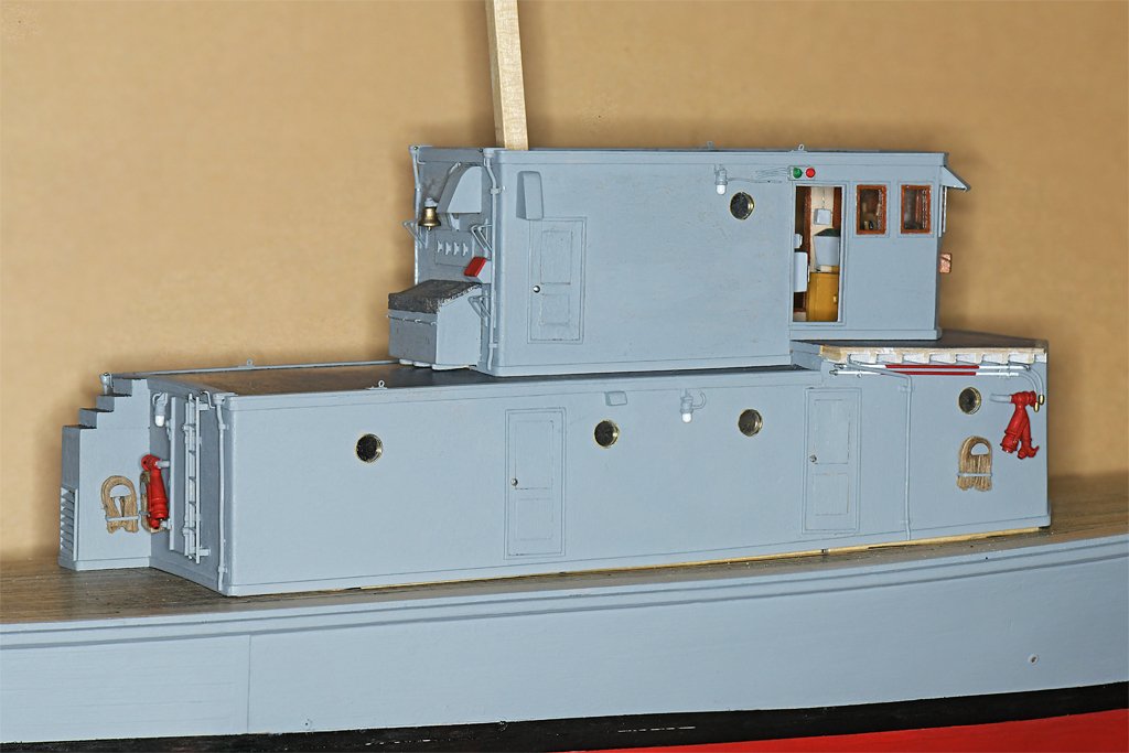Vaddoc, I normally sand between paint coats because I use a brush and that can leave some brush marks. It also helps to make a smoother final finish. However, I used plywood for the deck house sides and tops on the Cape model, and it has some significant visible grain features even after I had sanded it smooth. Each coat of paint fills in a bit more, until the graininess is hidden. I used one or two coats of acrylic sealer, but this wasn't enough. You can see this on the lower deckhouse that hasn't been painted grey. With all the small details that have been added I won't be able to sand it anymore, so the final paint coat will be pretty thin, just to cover the scuff marks from the prior sanding and handling. Then a final coat of satin acrylic varnish will finish the paint job. I have already done this on the hull and main deck. In hindsight I suppose I should have used sheets of basswood for the deckhouses. The basswood I have has a much less grainy surface than the plywood.