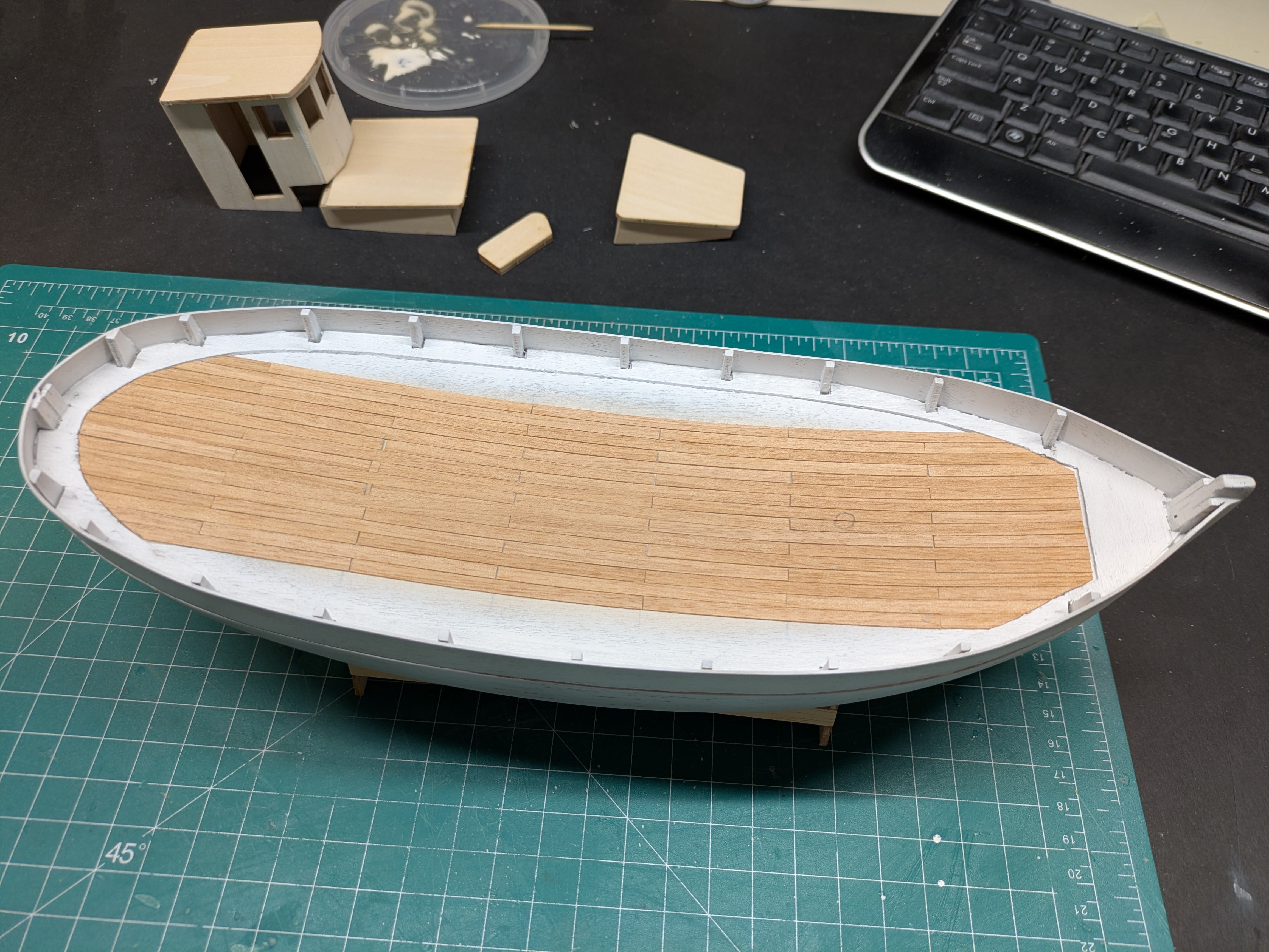 Not much of an update as I have been working on the Lobster Smack which is nearing completion. Finally started planking, must first attempt. So far so good and have calculated out how much to start trimming and angling as I go along. Not as scary (so far) that people make it out to be but sure see lots of sanding in my future . Have a great weekend all.