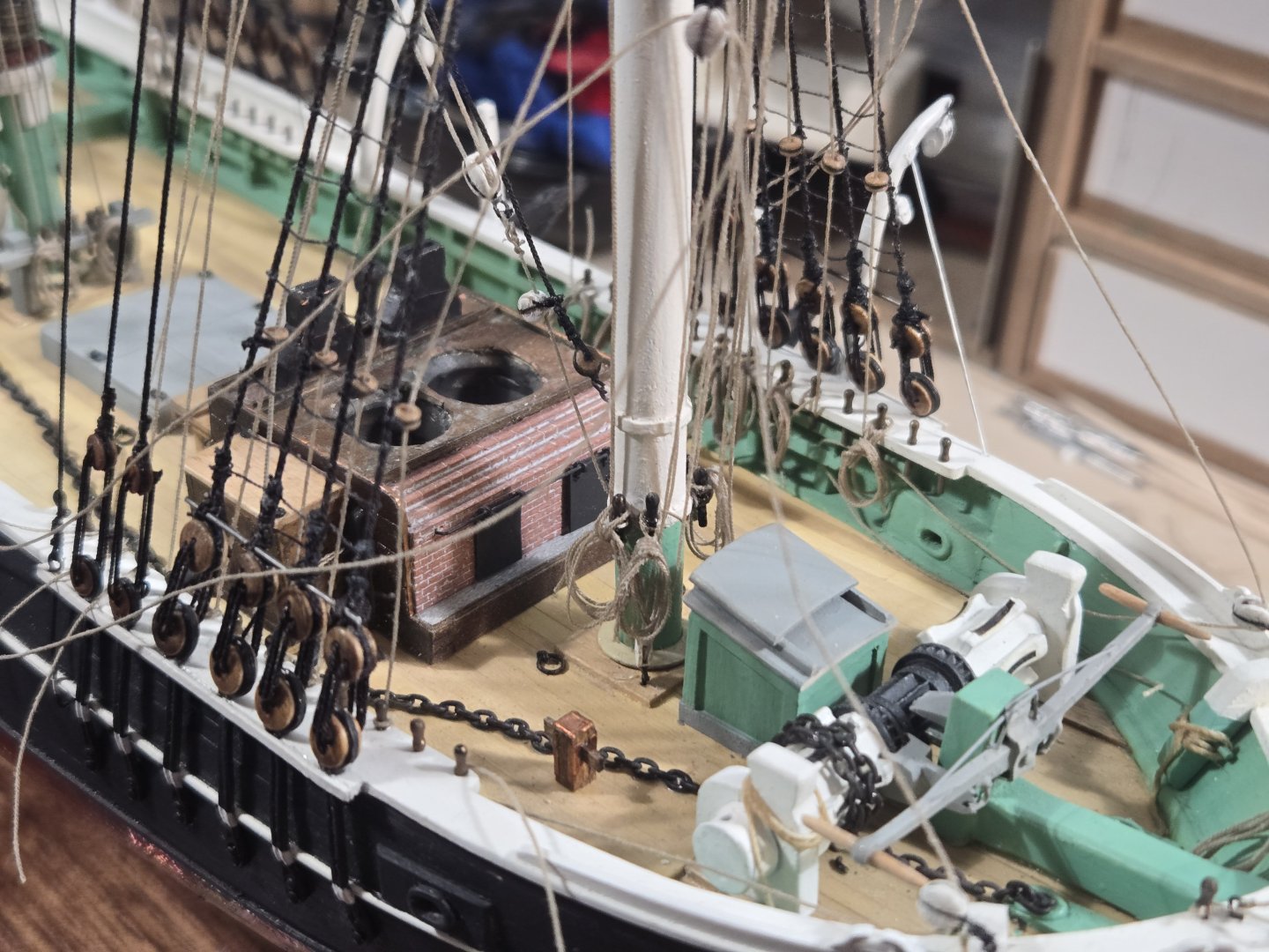 Richvee. At this point I plan on doing the cutting tackle. Some of the bunt and leech lines aren't necessary without sails. Aesthetically it looks better with them, not sure how much I'll add at this point. It's starting to become a slow frustrating process interpreting the rigging plans. Thanks for the tips!
