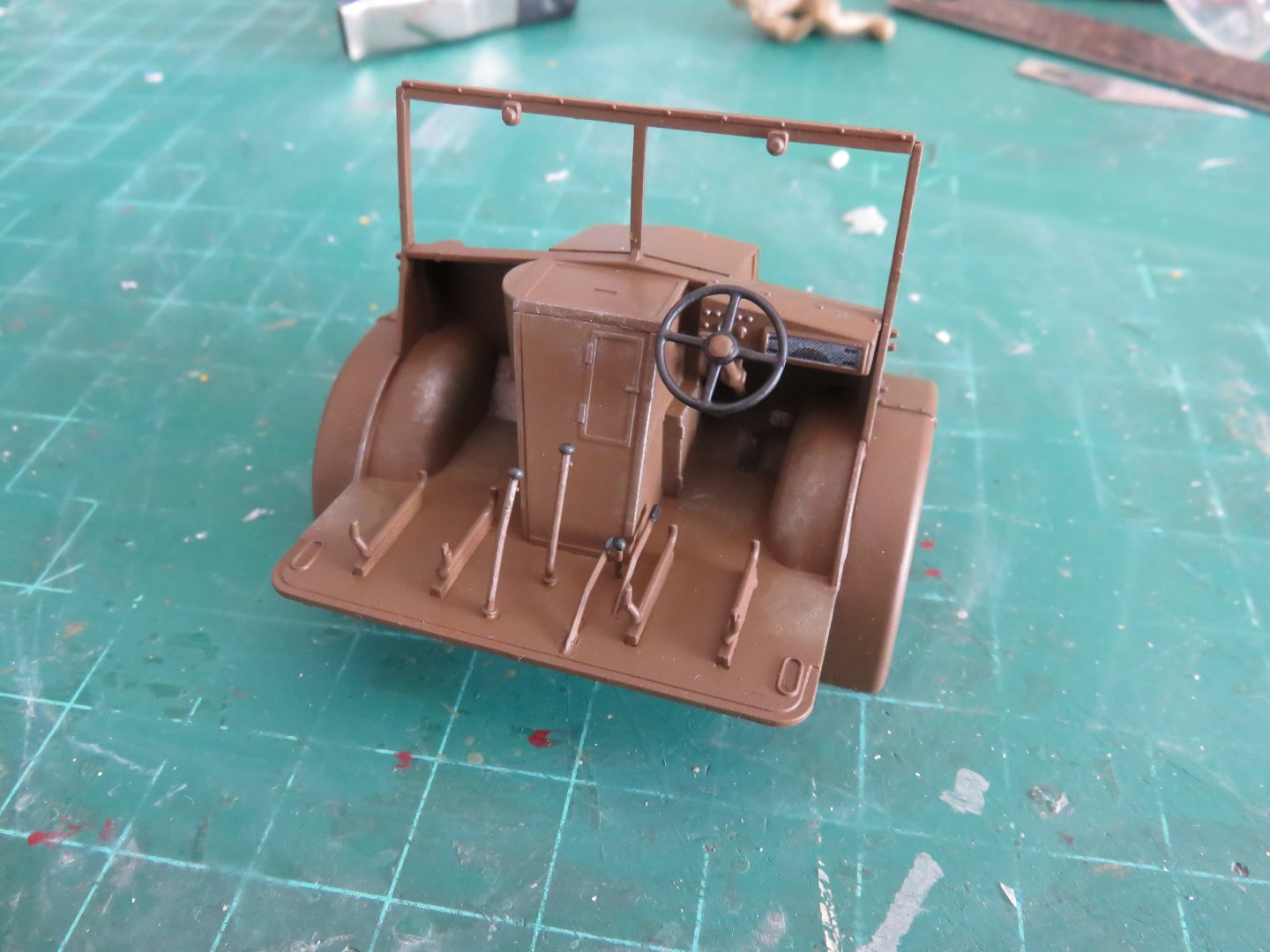 Well, after nearly a week, I have a brown truck.... or at least, an array of brown painted components that might assemble into something vaguely resembling a truck... I wanted to paint my truck in the early to mid war SCC2 brown, rather than the more commonly seen SCC15 OD green. I'm still debating whether to keep it solid brown or add the SCC1a dark brown disruptive pattern. British and Commonwealth vehicles used in the Italian campaign could be found in pretty much every possible British paint scheme, very often at the same time. Often the regiments were so short on time, and replacement vehicles needed so badly at the front, that (re)painting was often neglected. When the 5th Canadian Armoured Division, along with 1st Canadian Army Group Royal Artillery (which included the 2nd Medium Regiment RCA), were sent to Italy in the fall of 1943, they went without any motor transport or armour (no artillery guns, tanks, armoured cars etc). The political wheeling and dealing that brought the balance of 1st Canadian Corps to Italy (1st Canadian Division had been in Italy since Operation Husky, the invasion of Sicily), meant that the Canadians would be taking over the vehicles and guns of the British XXX Corps, who were sent back to England in exchange. This fact was kept secret from the Canadian troops (so as to not dampen moral) by telling them that their vehicles has been lost en-route (a myth helped in no small part by a Luftwaffe air raid that sank two ships and severely damaged a third while the convoy was passing Algeria). Many of the vehicles left behind by XXX Corps were no prizes, however. Many had been in service since the desert campaign, and suffered from many war weary miles. The War diary of the 2nd Medium records an eventful journey in late December 1943 by an advance party in an old Dodge D15 15 cwt truck. The truck had no doors, no brakes, the transmission was missing a gear to two, questionable tires. They had to travers a not insignificant portion of Italy's mountainous terrain in winter. How the men and the old Dodge managed to survive the journey is still unknown. Back to my C15a FFW, Some more test fitting and detail painting has also been carried out. Unfortunately the dashboard is rather lacking in details. Yes there are some buttons and switches, but there's nothing for the speedometer or other indicators that were located in the rectangular panel to the left of the steering column. I will be painting the seats and setbacks in a kind of khaki colour, and after they've been added, I can finish assembling the cab. Just for fun another dry fit of the compontents: I will also need to add a few more small details to the rear area. There were a number of brackets for hanging various small radio components, like the headsets, spare aerial mast sections and even a few rifles. I should be able to make those up fairly quickly and get them added on without too many issues. Thanks, as always, for all the "likes"! Andy