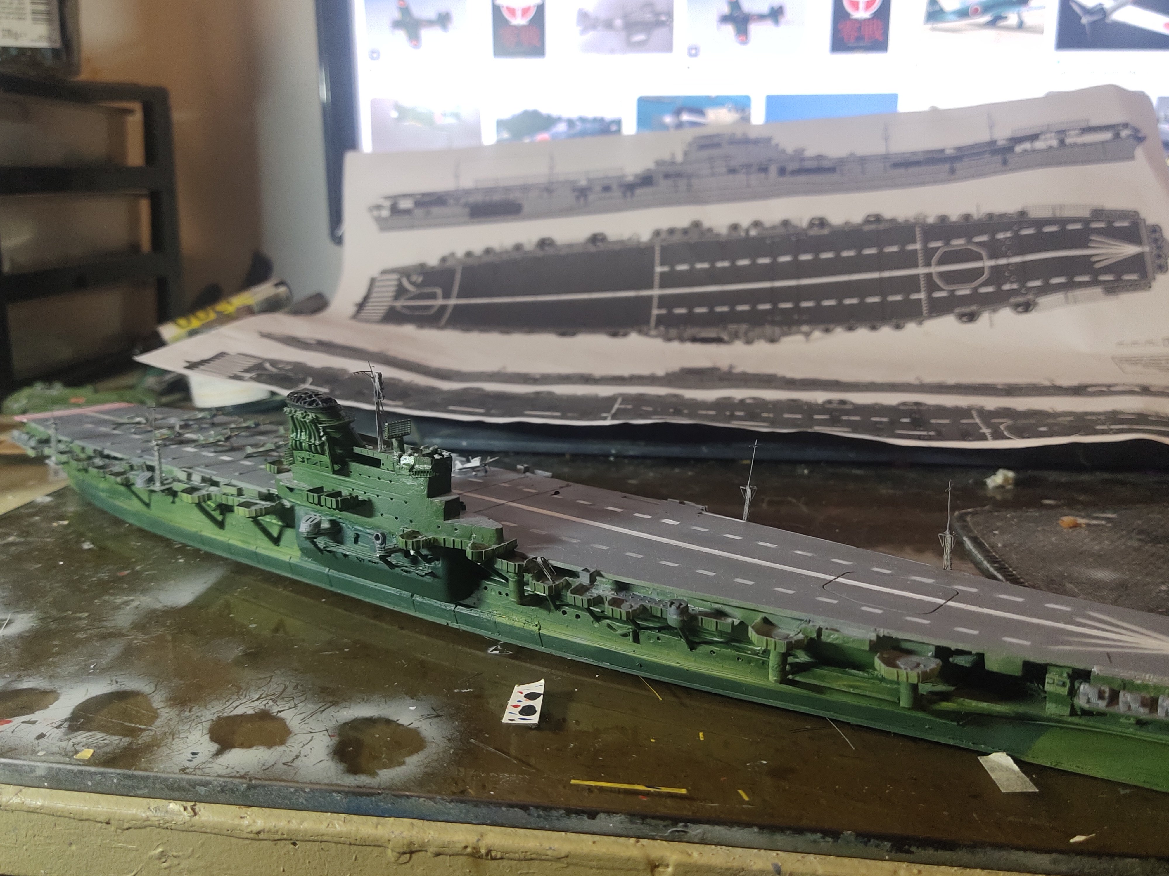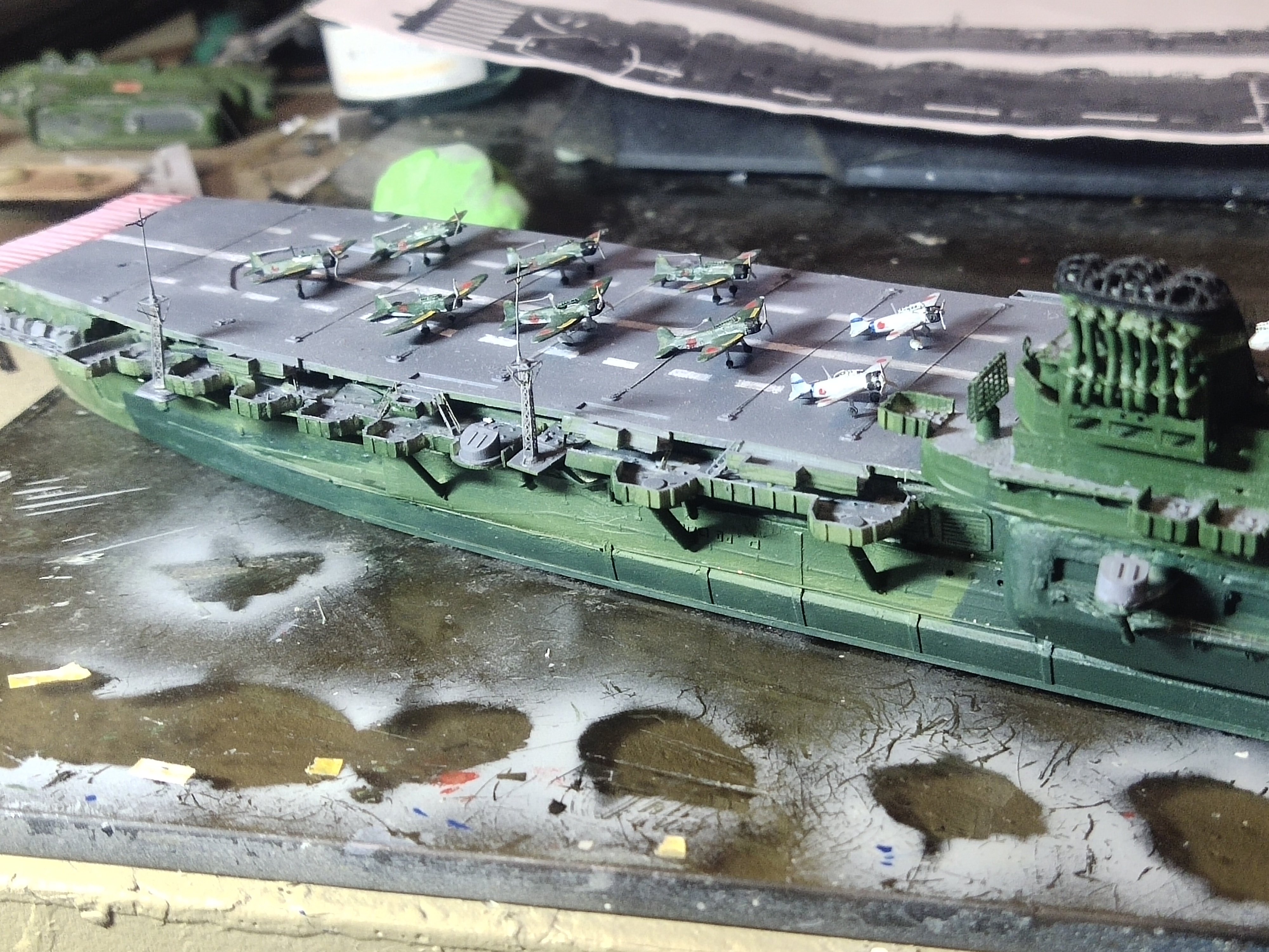 There's only one picture of Shinano available. I have Kagero's 3d book for reference. Starting from the top I realized that the oval shape of the funnel is wrong. So I printed some replacements to experiment with a teardrop shape. The superstructure is also not compatible with the PE parts so I need to work with it also Under the deck there is actually a Yamato class hull which seems that Tamiya used this to the Yamato or Mushasi model