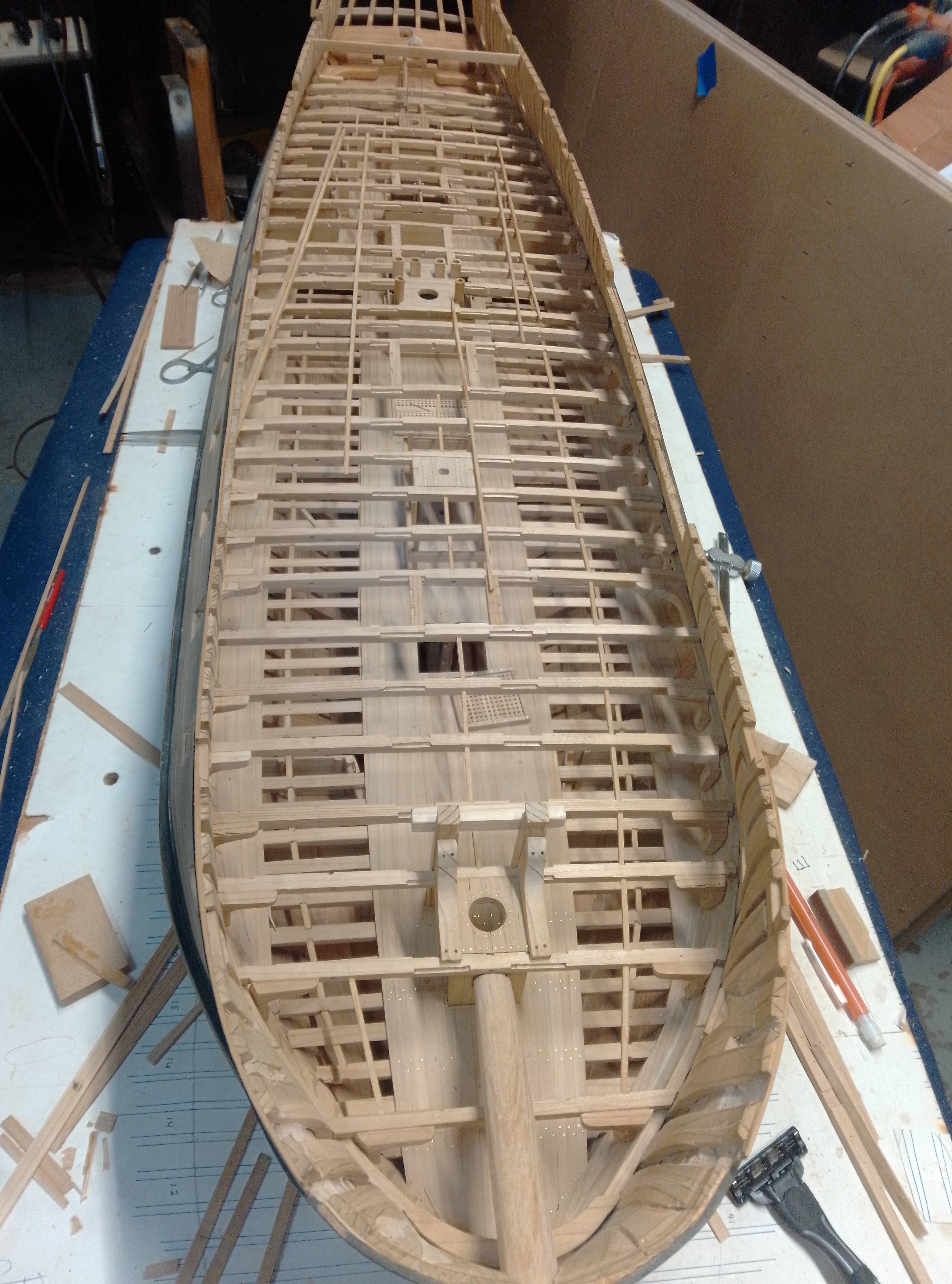 Cold weather has come around in my part of the world,so time to pull the dust cover off the Mahonesa's and resume working her,not much has been done,still working on the gundeck beams and building the gratings,need to build a different stand so I can mount the rudder and began working on the tiller and sweep.
