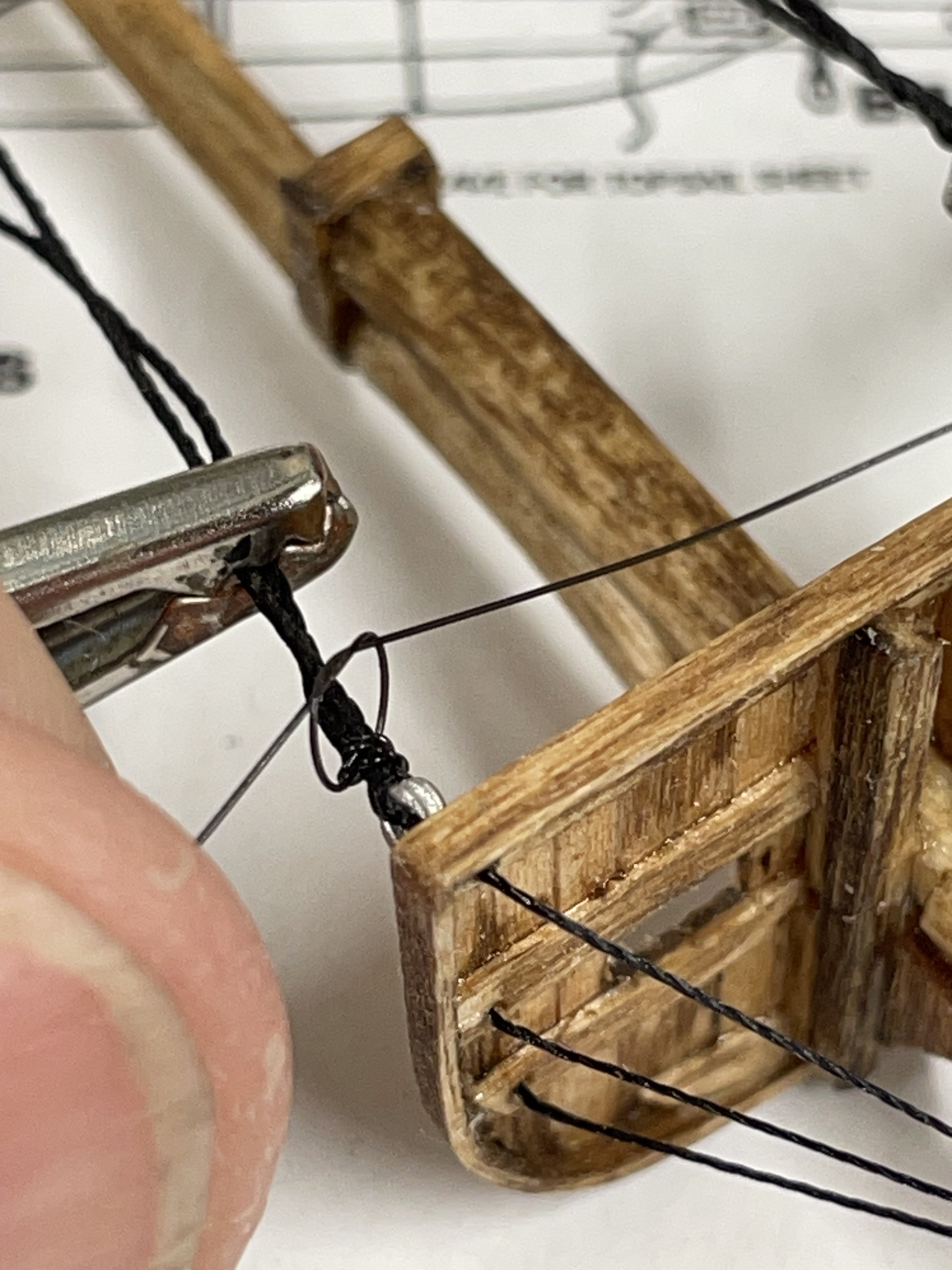 Smart move Bob, be careful of that beautiful Bowsprit. We know hoW that can go as well. Great job with serving the Main Stay Collar. Nice work overall. Carry on sir, Cheers 🍻