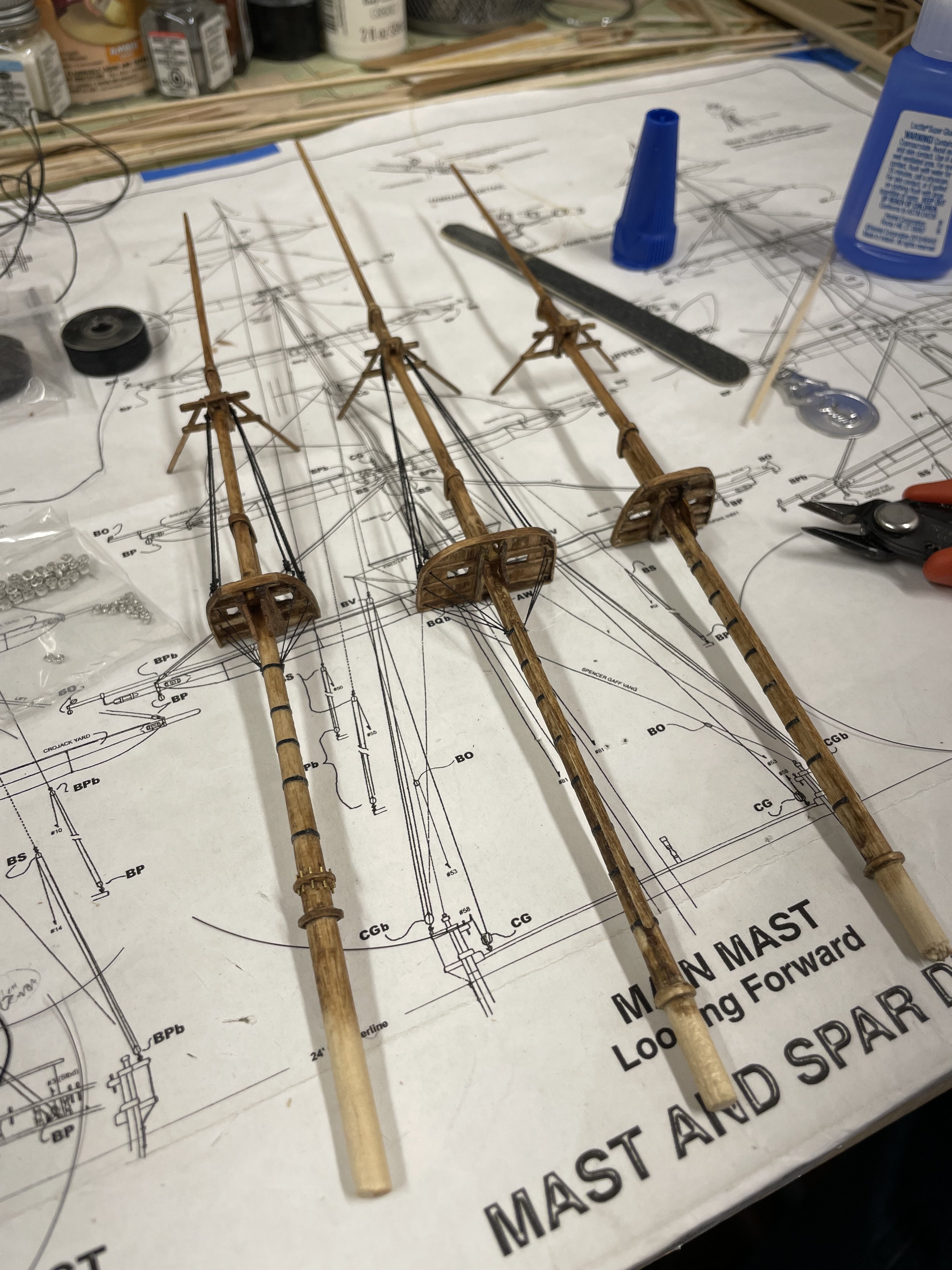 I am back!!! I can’t believe it’s been 2 months since I worked on the Red Jacket. Here is the progress made tonight. Main Mast Upper Shrouds… Cheers 🍻