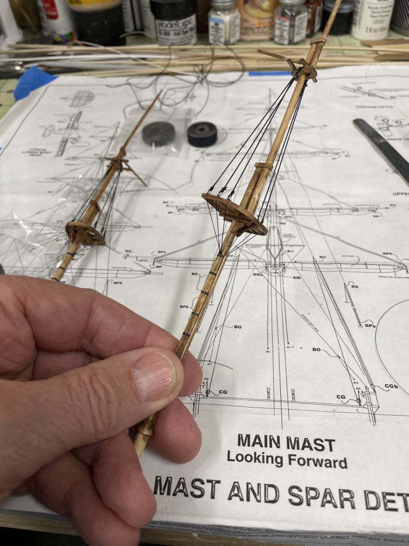 Glad to hear you are back at it. The shrouds are looking great. Ratlines are always a good way to put a grin on one’s face. Painting penguins with your niece is a good start. 😆 You’ll be out of the dumps in no time, praying 🙏 for you. Taking a walk through my gallery always works for me. 😎 Cheers 🍻