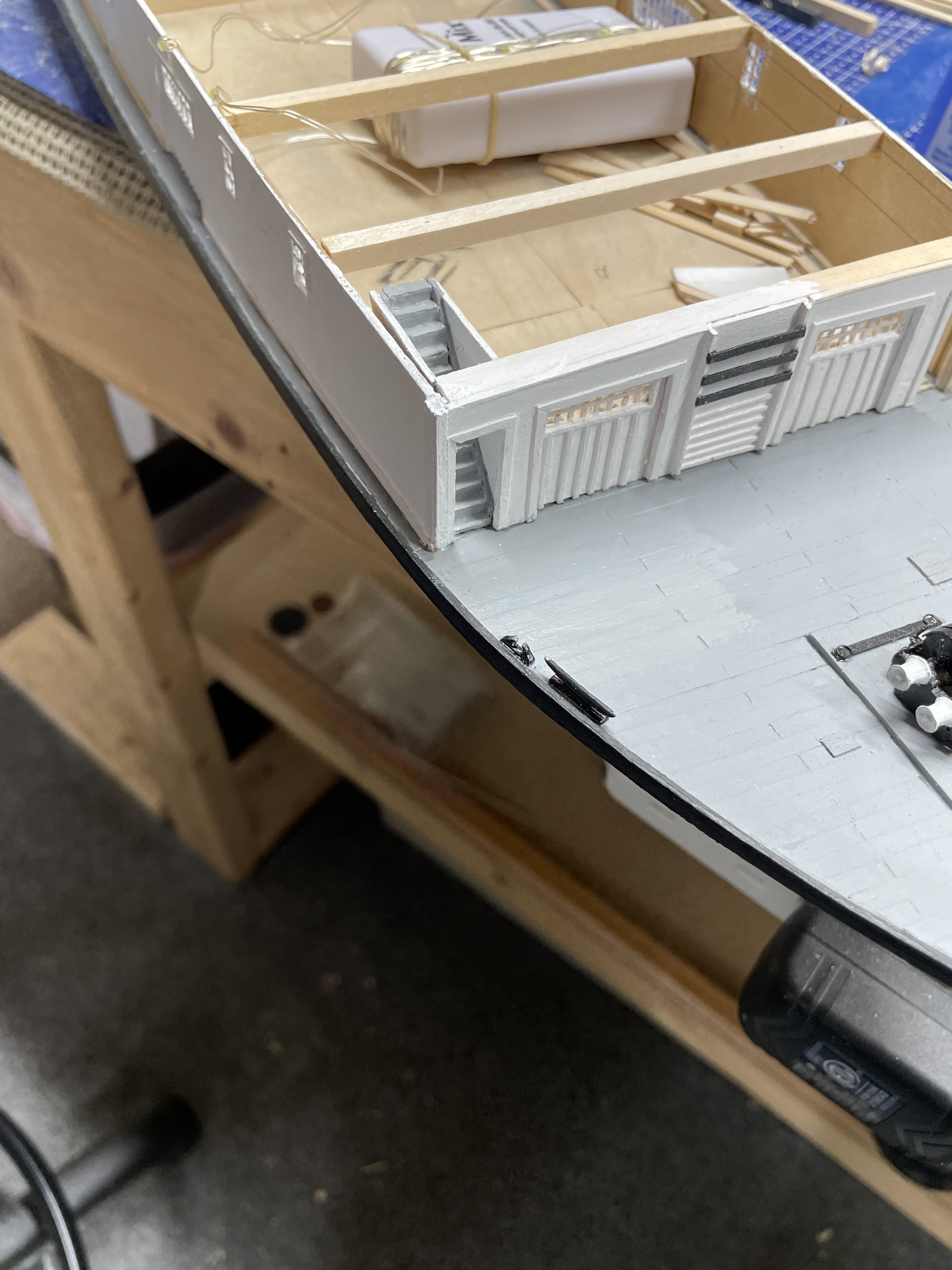 Nice work on the Bulwarks. I like your method of aligning the scuppers. Better than drilling them out, after planking is completed. 👍