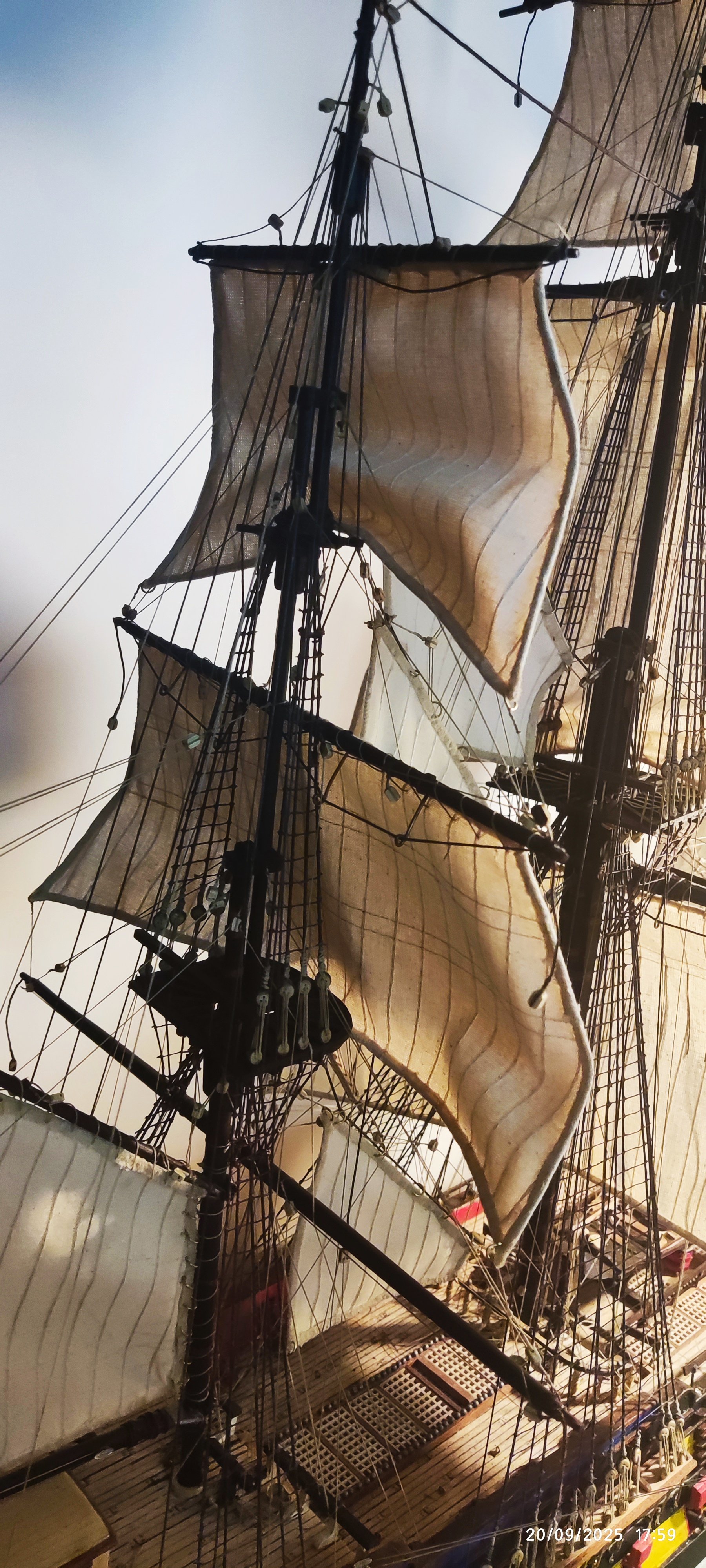 Now is time for the lifts of the yards,that raise and turn the yards to right positon,according the wind. All of them must secure in specific place on deck, according the insturctions. A lot of threads, and the space for the hands limited. Extra carefull movements, not ot brake or damage other things of the ship.