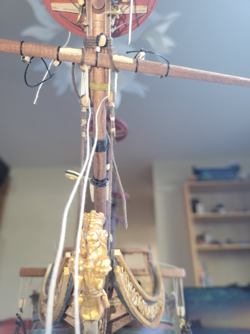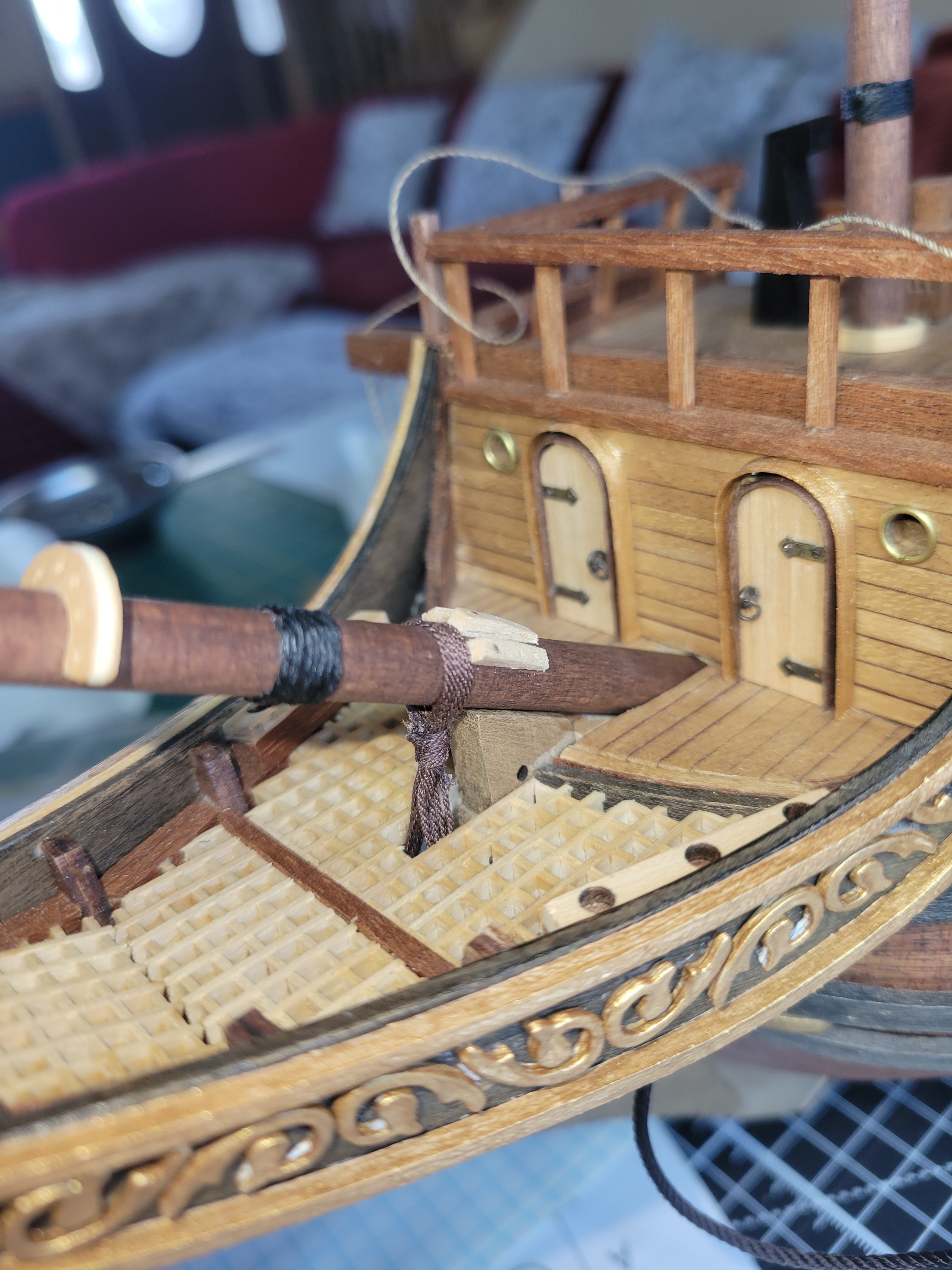Just a note on ropemaking. I have a thread with some variation in its color. Made a small rope from it and at first figured i couldn't use it because of the variation. Realizes that this would actually perfect for any rigging lines that I want to "accentuate artistically" so that they stand out from others on purpose. For example, using it on the cathead/anchor tackle. I know thats not "accurate" but I like the look anyways so now I just need to think through anywhere else I want that done intentionally!
