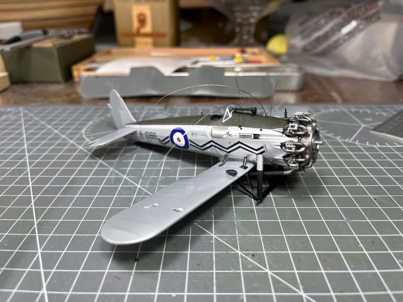 Hi all, thanks for your feedback! @Diver, indeed, I also read that about D. Bader. I went on and after some little repairs and a wet sanding session, I put back the tail feathers on the plane. The elevators were positioned slightly drooped and also the rudder was slightly off neutral to add some movement. Probably the rudder cables, which are made of stretched sprue, are a bit out of scale, but I couldn't handle thinner ones. Another light coat of Mr. Surfacer 1500 followed to reveal remaining blemishes. Next, a silver dope paint will follow for the fabric covered parts before putting on additional small accessories. To the next installment, best regards, Dan -