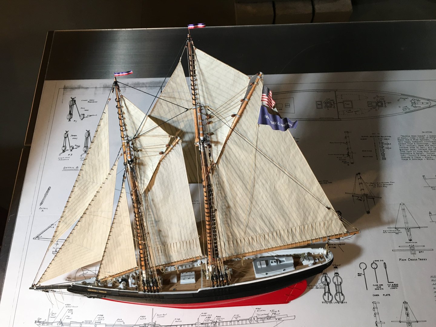 I'd love to put pics of my completed THEBAUD on the Forum, but I don't know how. I'll get my nephew to help me. You're doing an incredible job on yours. It looks like the same vintage model as mine but mine came with actual "blue" print plans.