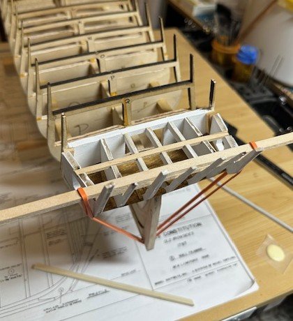 I will admit that that I cannot do the seizing like what you see in the demonstration videos well, either. My "seizing" is more of a series of half hitches, back and forth on each side of the rope being seized, climbing up a millimeter or two before it looks like a good enough wrap to hit with a drop of glue. Would love to learn better for this Constitution rigging.