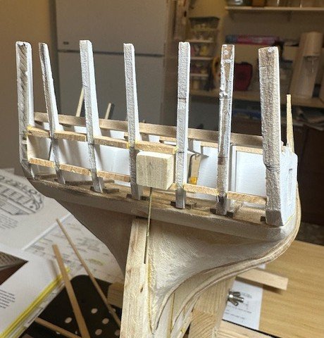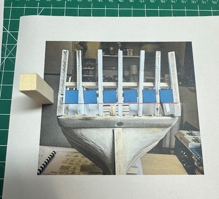 Nice work, Peter! I was trying to analyze that first picture and what you had done, and finally realized that was probably an edited picture from earlier in your build that you used to draw lines and circles on for placement purposes, and not an actual picture of your ship. 🤷♂️🫢DOH! Channels and chain plates look great, sir!
