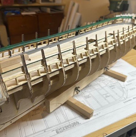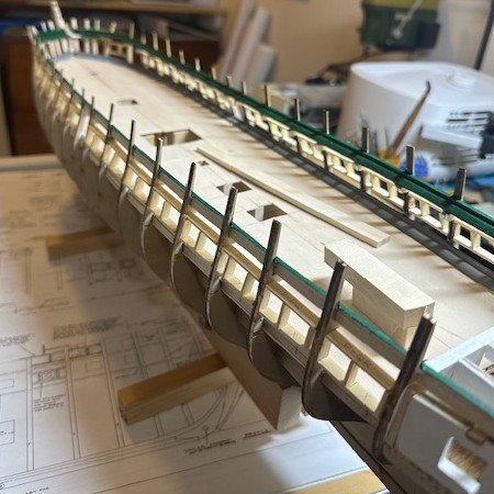 Thanks, Peter! Yeah, I had forgotten that my wife had taken this picture as we were waiting to take the Constitution tour that day. As you can sort of tell in the background, it was a cloudy day that day, off and on drizzle, so much of the spar deck stuff was covered. Bummer! I'm tempted to take a 1-2 day quick-trip to Boston this spring just to get back on it on a clear day for good pictures. As I mentioned somewhere, I'm starting the gundeck gun port framing now. I measured and cut the bottom frames last night, so will glue those in today, I hope, before grandkids are over here. Then work on finishing each of the gunport framings later in the week. Thanks for checking in, sir! Your ship is shaping up nicely! You're getting to the fun rigging stuff now!