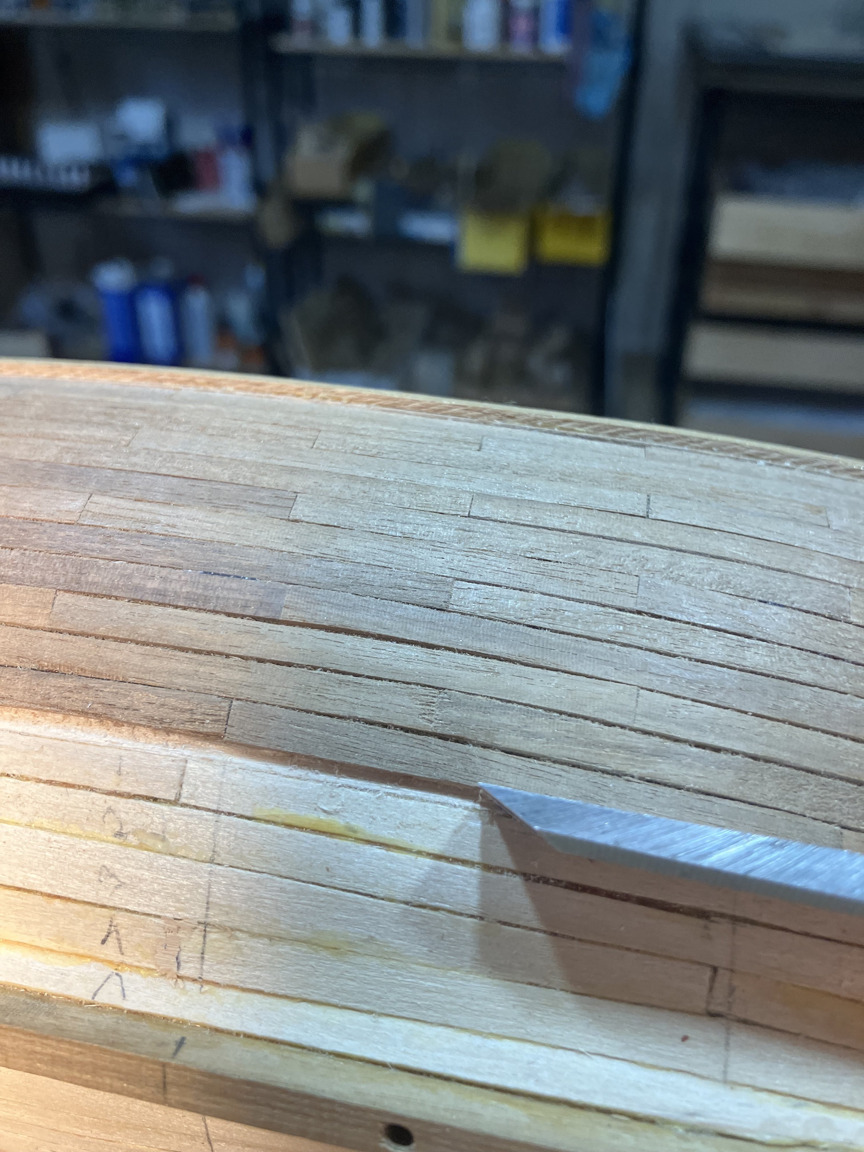 HMS Badger: Cutting Bearding Area in First Planking
